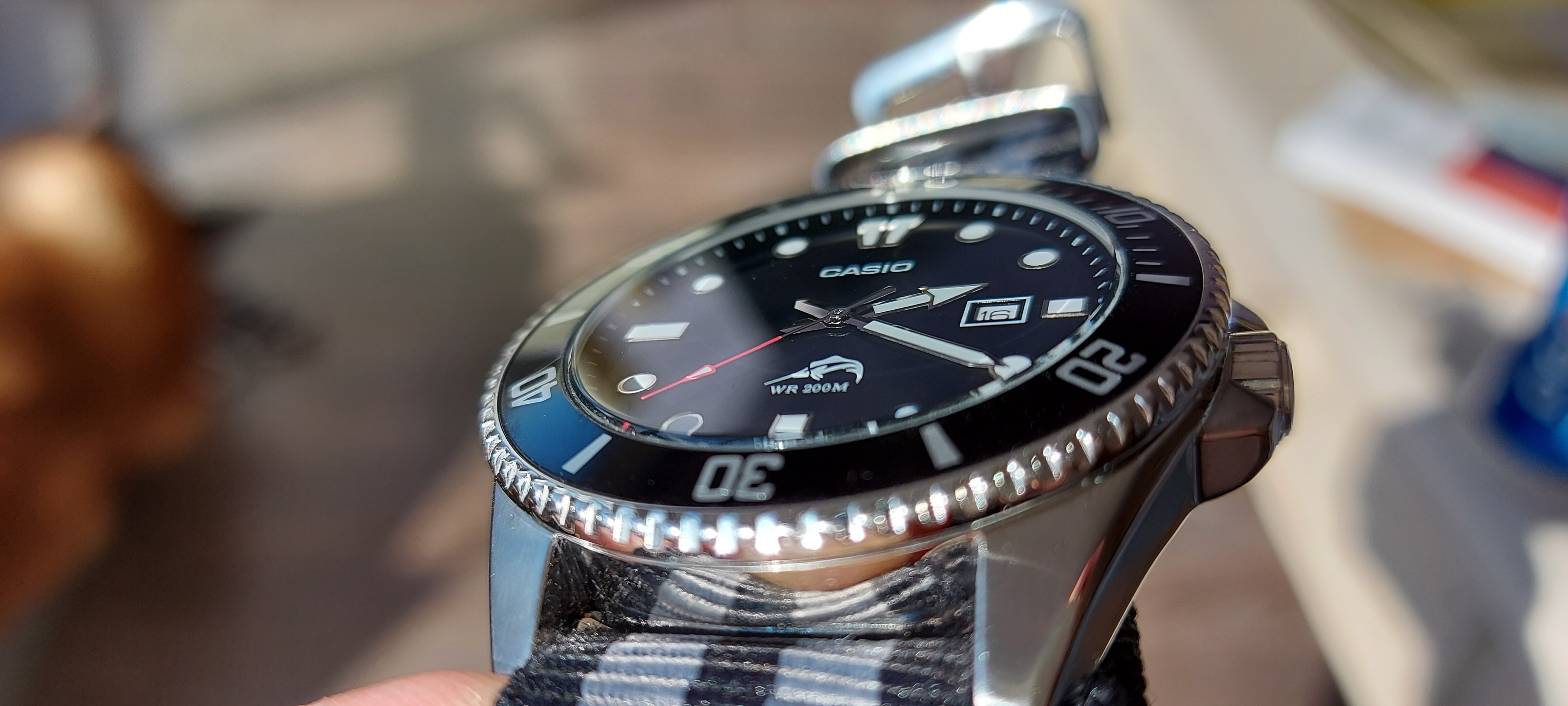 Hier even op een groene nato, maar normaal draag ik hem op de originele stalen band.