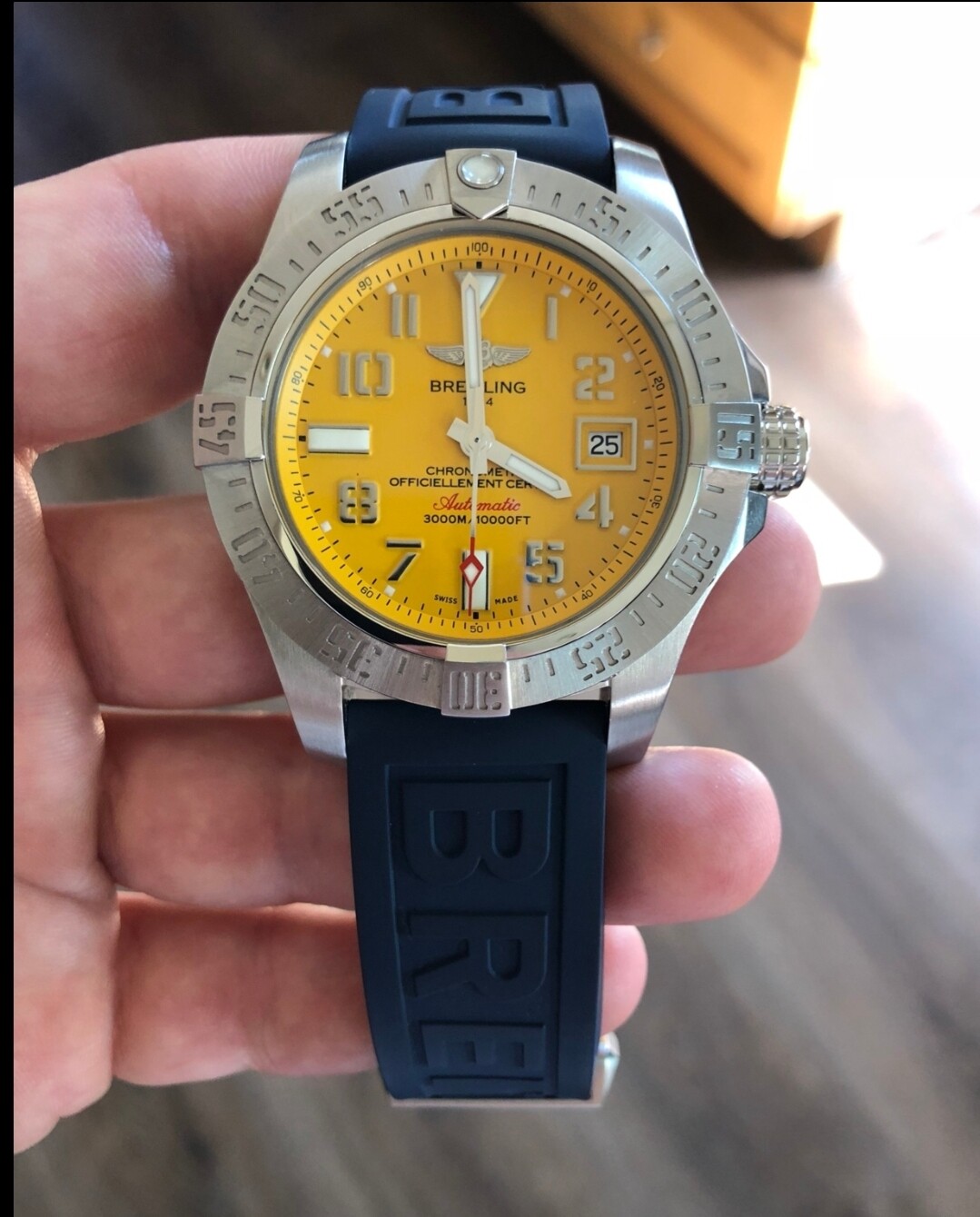 Volgende week staat het ophalen van de Breitling Seawolf met gele wijzerplaat op de planning en nou ben ik bezig met het oriënteren welke kleur horlogeband er het mooiste bij staat.