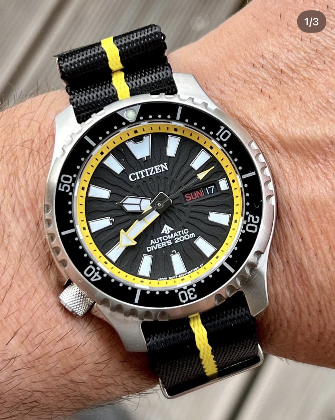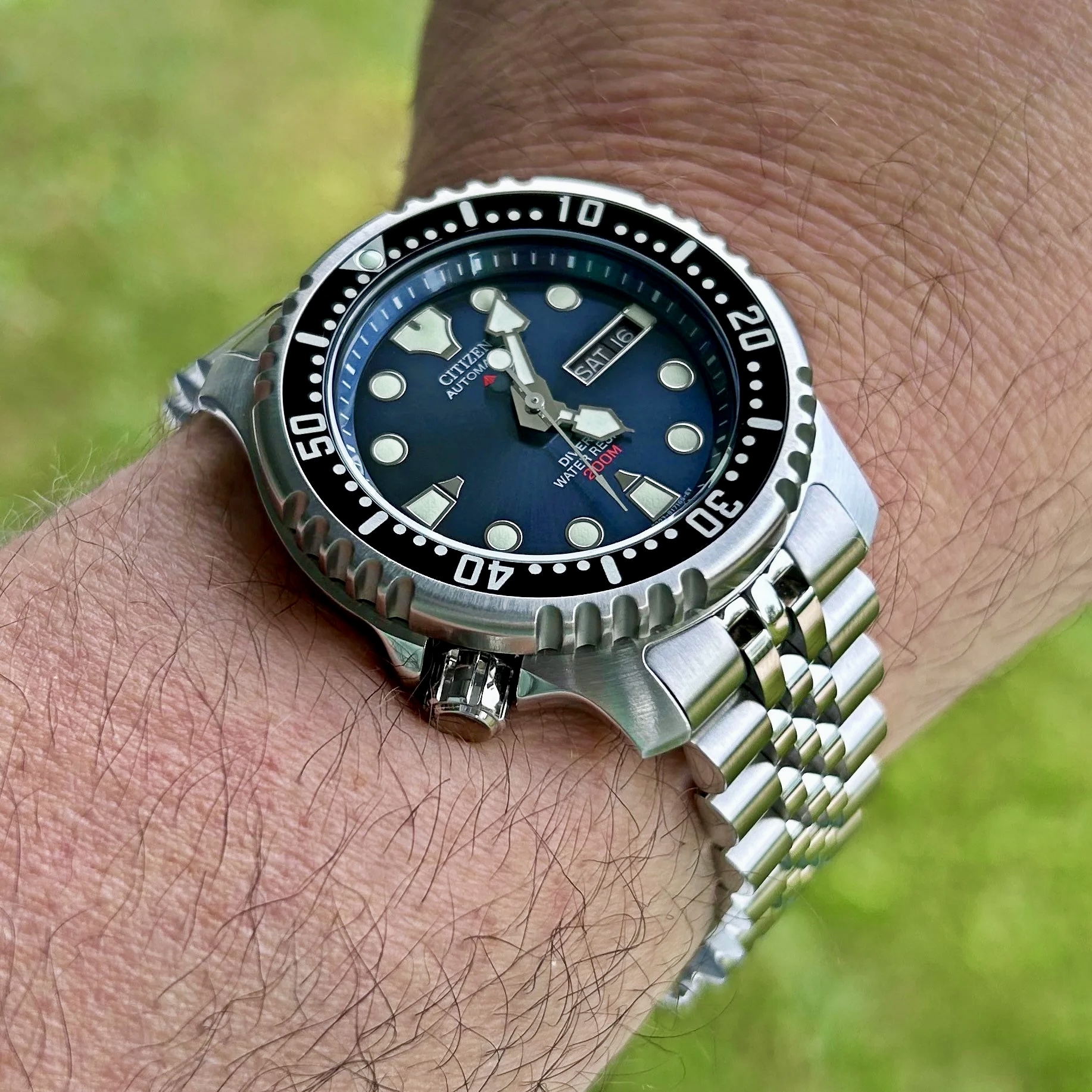 Ja, niet dat ik nou zo rijk ben. Maar als het om de prijsklasse tot zo’n 500 gaat, maakt het mij niet zo heel veel meer uit of het nou 2, 3 of 400 euro kost. Ik ga dan gewoon voor een leuk merk dat meer dan prima horloges levert, die ook nog eens zeer comfortabel dragen en mij qua looks aanspreken. En ik kan gewoon niet met droge ogen beweren dat een H.G.P. ‘duur’ is. Dat gaat gewoon nergens over, vind ik. Ja, een Citizen is natuurlijk een heel goed horloge, voor een heel scherpe prijs. Maar ik ben in de afgelopen ruim 30 horlogehobbyjaren nog nooit in de verleiding gekomen om er een te kopen. Ik weet niet. Prima spul. Maar ze doen het gewoon niet voor mij. Is heel persoonlijk, ik weet het. Nou ja, de duikers van H.G.P. doen me meer, in ieder geval. Dus daar zou ik voor kiezen (en heb ik ook gedaan, nu 2x).