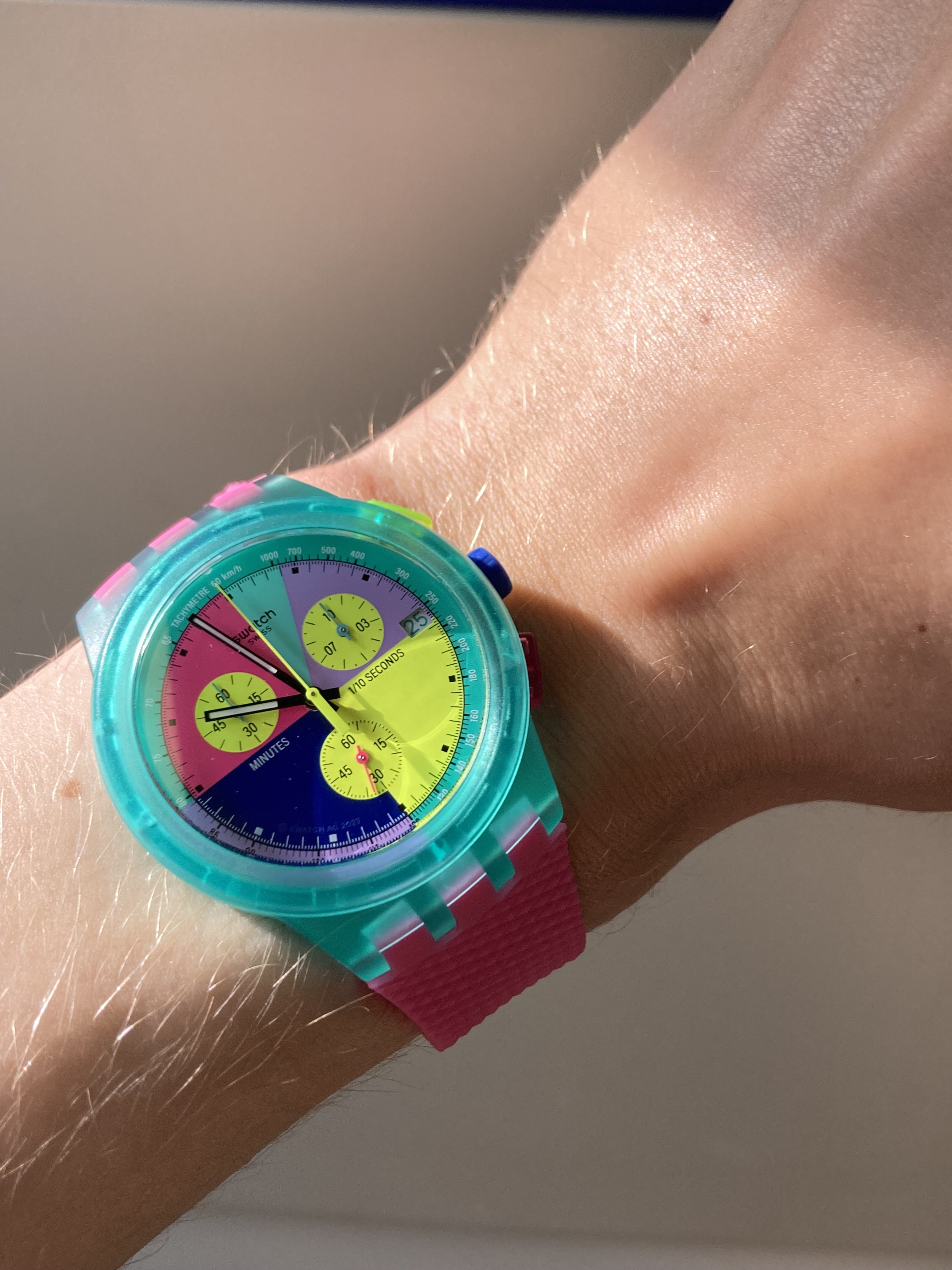 Het is nu een beetje bedeesd in de horlogedoos, met weinig kleur. Dus er mag wat karakter bij, wat kleur, wat bad-ass attitude. Voor als ik een thuiswerk daggie heb of gewoon op vakantie aan het strand.