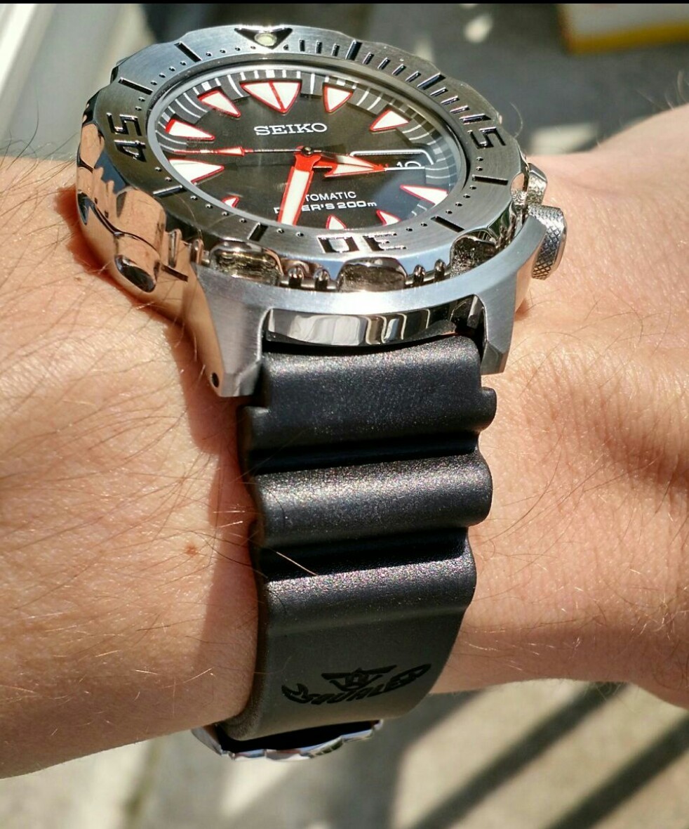 Squale heeft een fijne natuur rubberen band met de Seiko waves die erg mooi op de Seiko Monster kan. Dan heb je wat hoogwaardiger en soepeler rubber en toch de oorspronkelijke looks⦠Met vanille geur uiteraard.