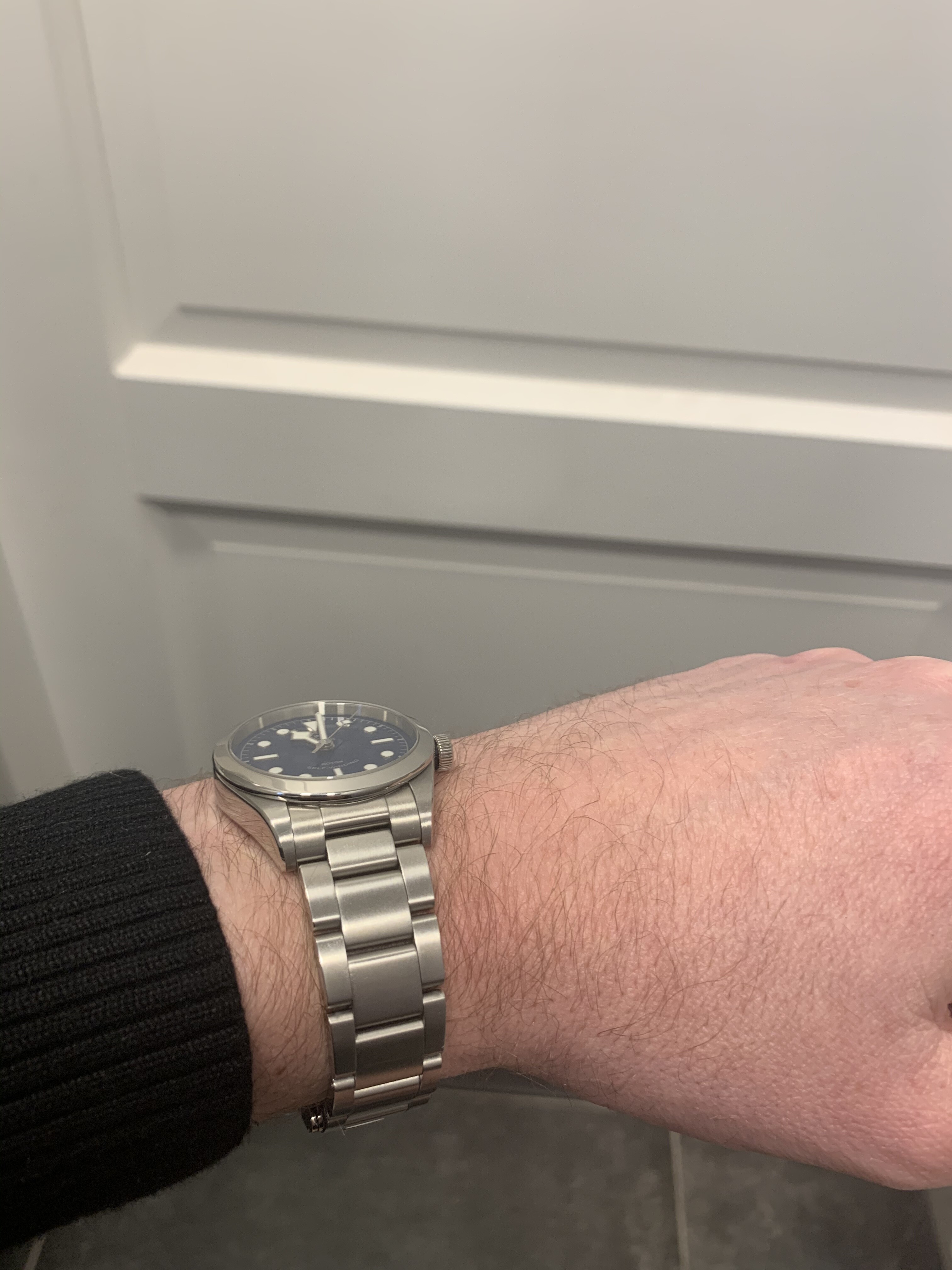 Ik vind juist die Tudor 36 op jouw pols niet in verhouding. Dus die zou ik eruit doen. Vind hebt daarnaast (smaken verschillen) een vrij kinderlijk horloge.