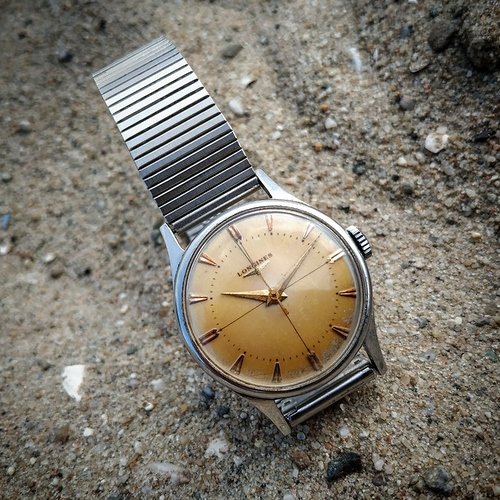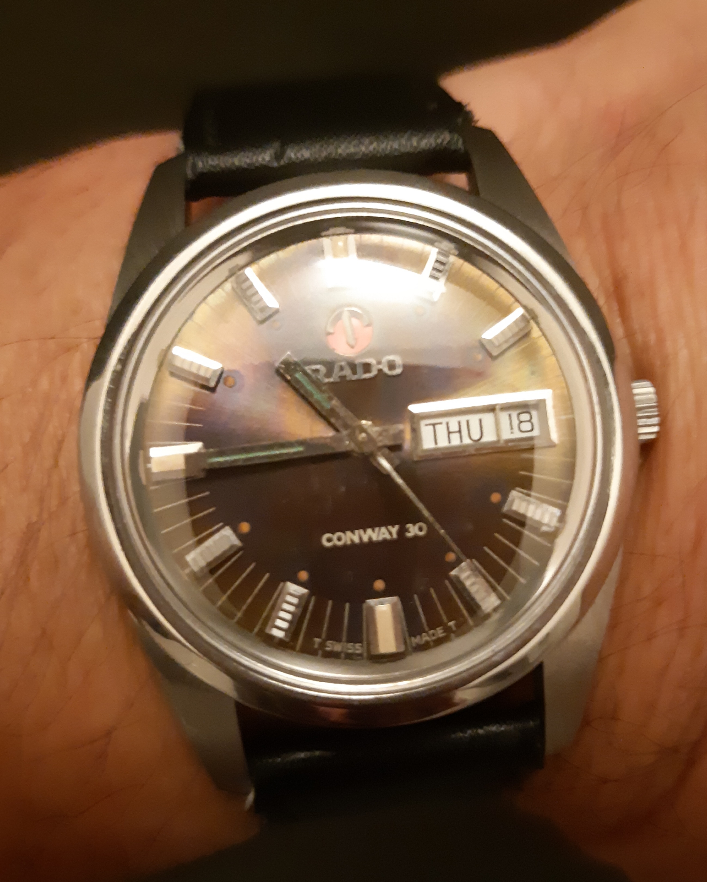 Gisteren deze Sandoz geserviced. Voor een klein prijsje op de rikketik gekocht in niet lopende toestand. Hij loopt nu zeer goed. Bij het monteren brak nog een schroefje met linkse draad af en dan ben je blij dat je wat Raketa spullen hebt liggen want daar zat zoān zelfde schroefje in, met de juiste maat.