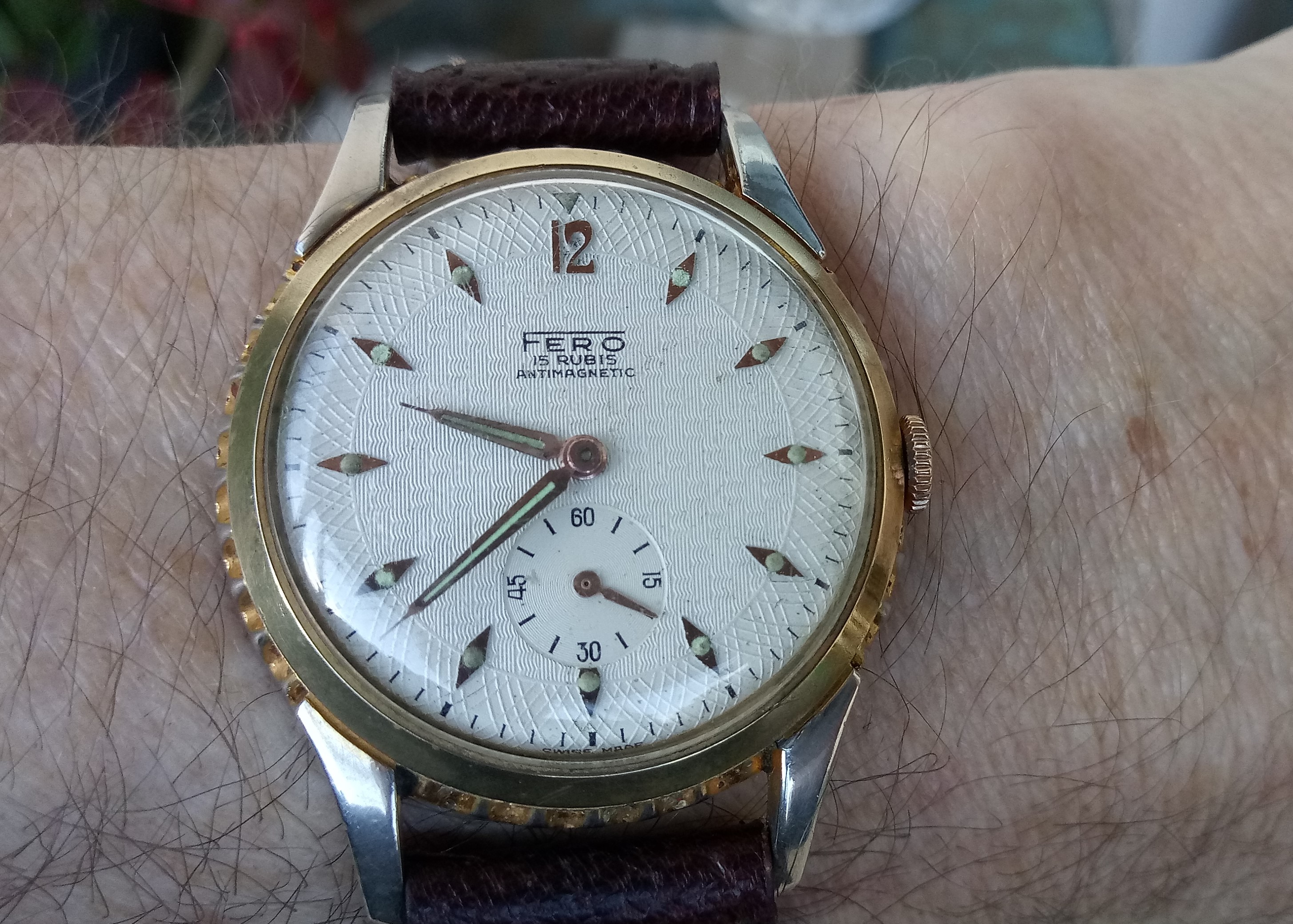 Mooi horloge, goed en bijzonder merk, fraaie patina. En dan ook nog een erfstuk met een verhaal! Helemaal top. Dit vind ik altijd de leukste stukken in een collectie. Koesteren!