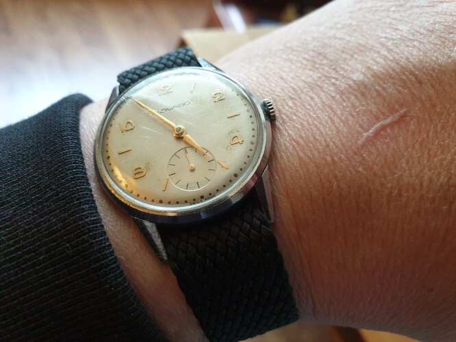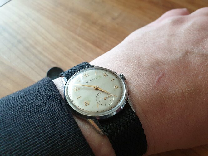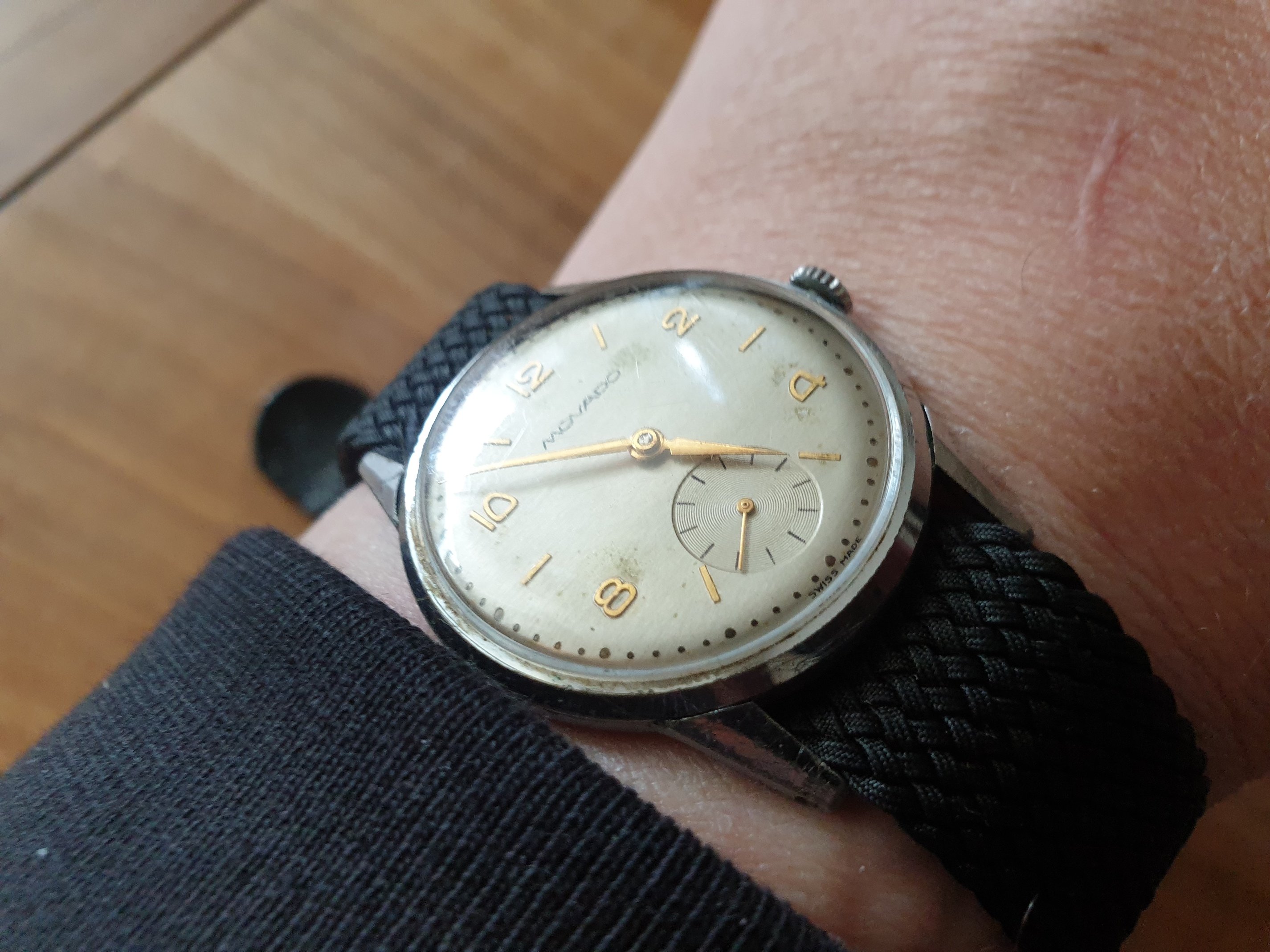 Deze uit de onderste vintage lade getoverd en weer eens aan de pols gedaan. In de tijd dat dit ongeveer 70 jaar oude horloge courant was maakte Movado nog echte tophorloges in de hogere klasse. Deze lag 20 jaar stil… vanochtend ’ starten en lopen’ en nu nog steeds binnen de minuut gelijk. Daar word ik nou blij van.