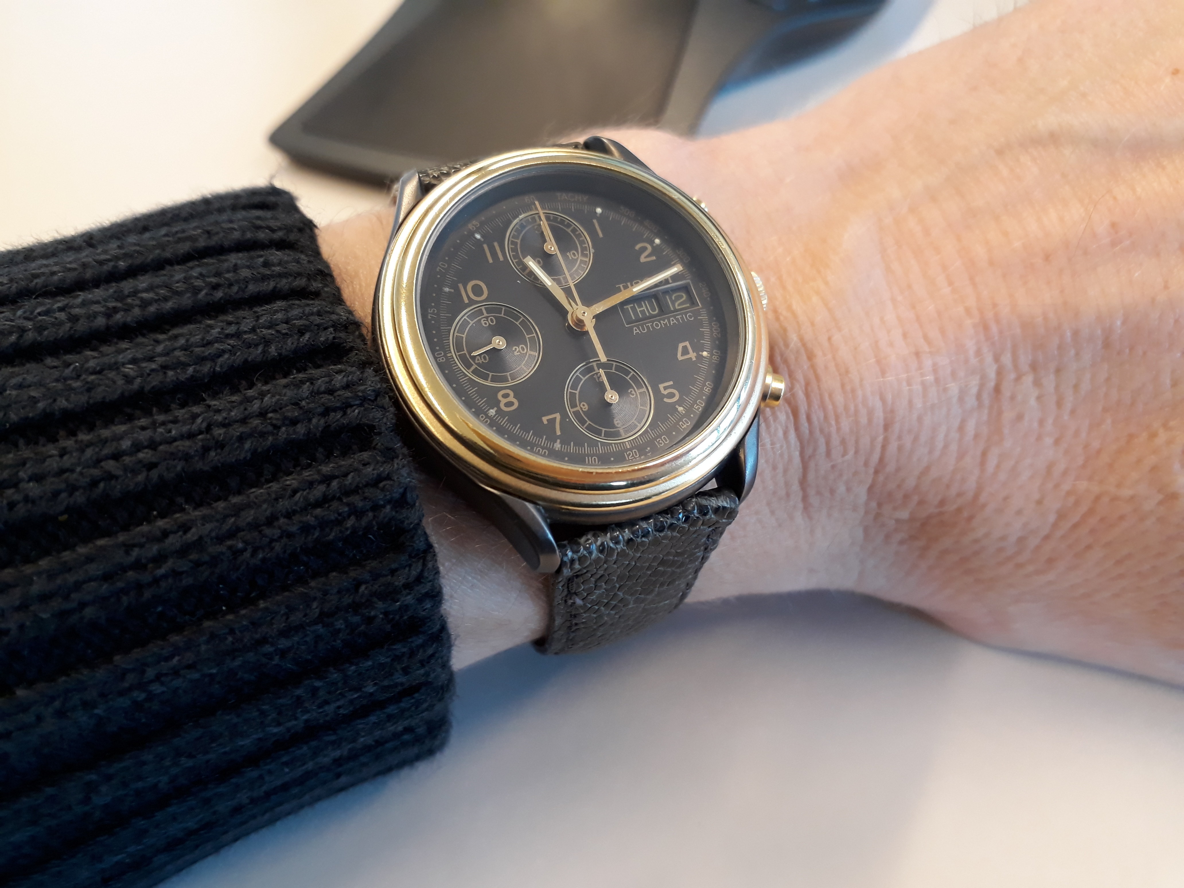 Na een half jaar in de kast te hebben gelegen met een losse kroon toch maar even kundig laten servicen door ons aller @Tokes. Weekje wachten en hij kon weer om de pols.