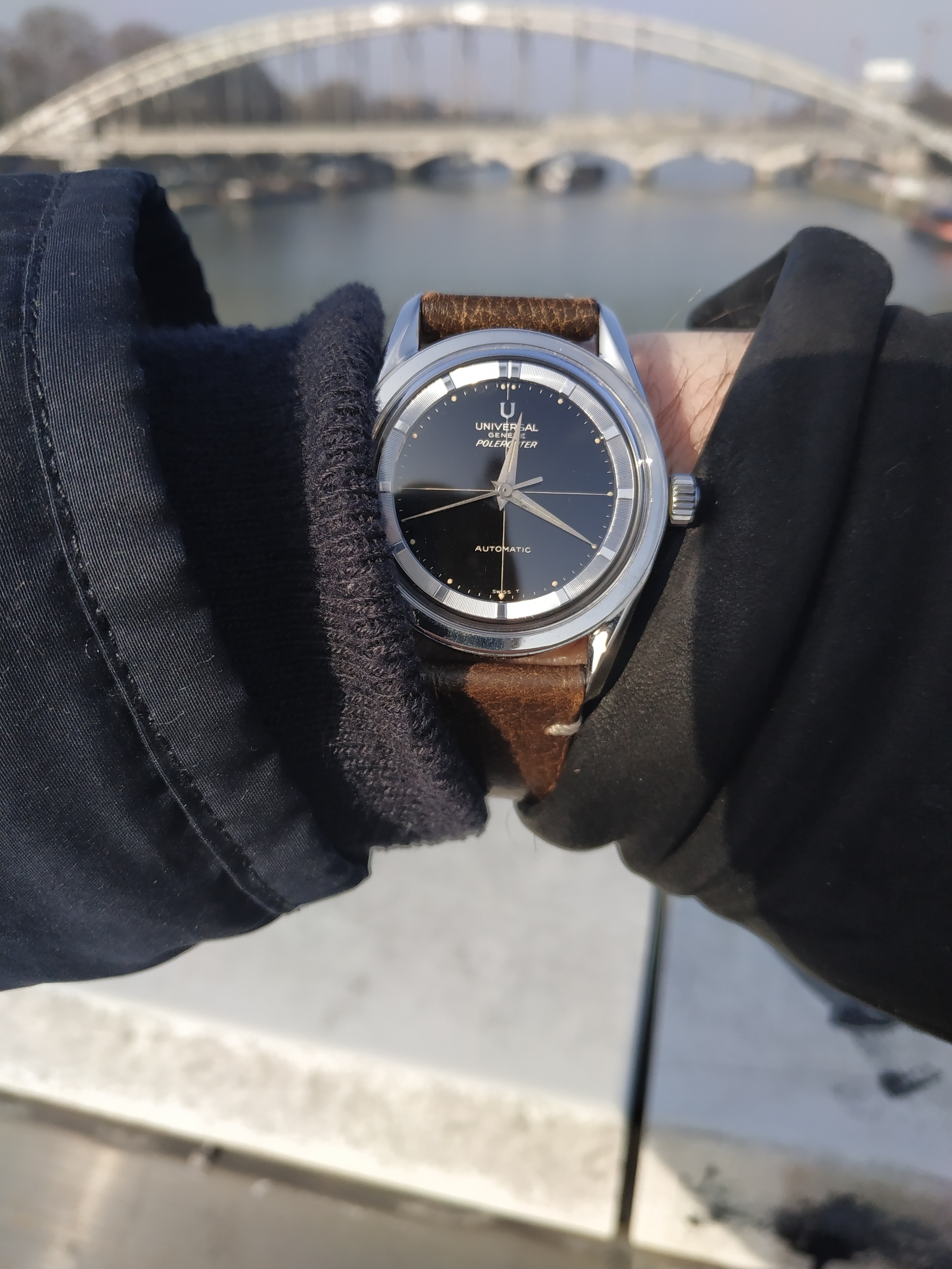 Vorige week aangekomen, bijna non stop om gehad! Grappig contrast met de her en der op het forum terugkerende zoektocht naar vintage die groot genoeg is voor moderne herenpolsen. Ik zoek juist naar klein, dat is hier goed gelukt