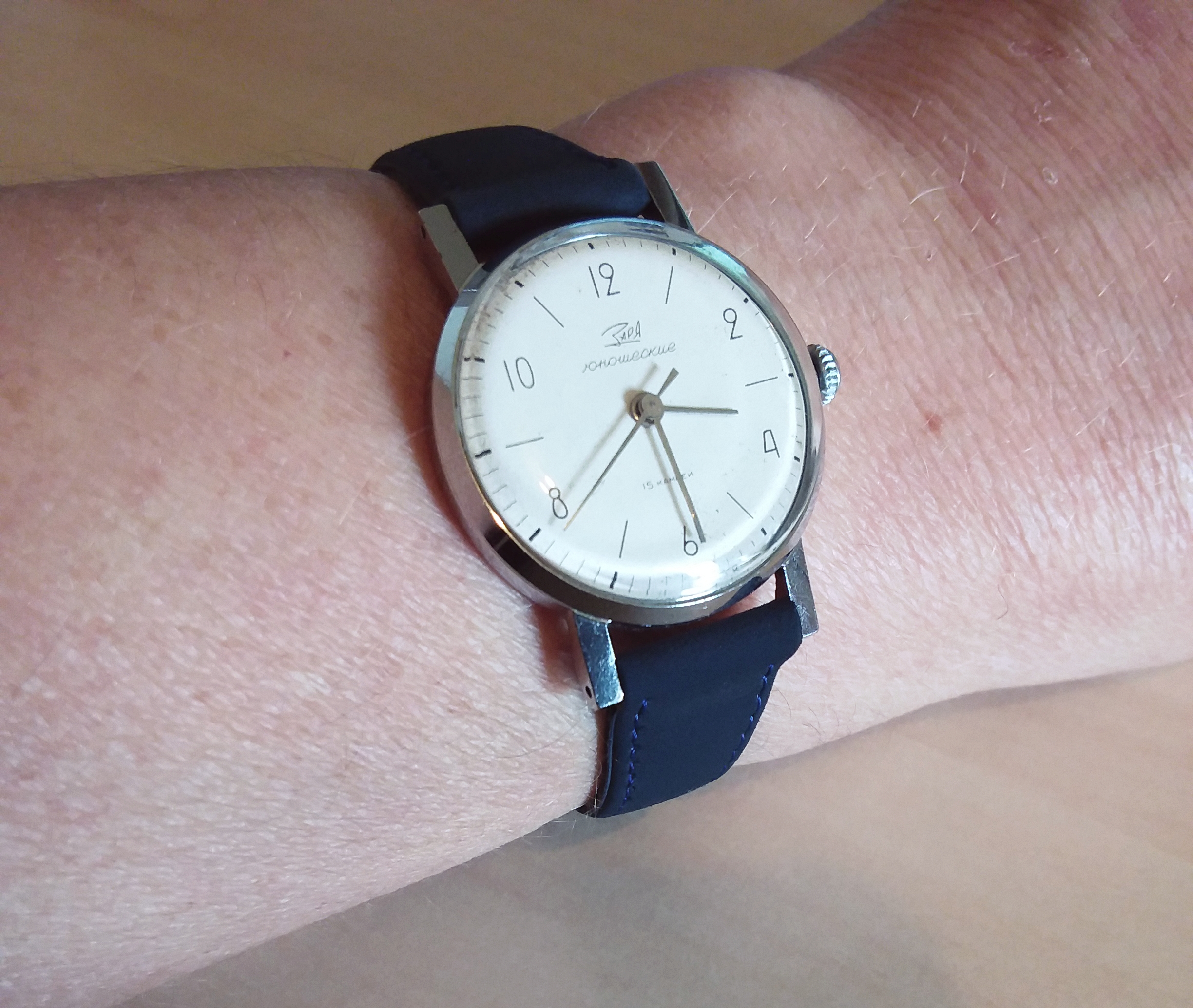 Iets andere Zaria dan eergisteren; zelfde kast, zelfde wijzers, maar een andere dial en font geeft toch weer een andere look…