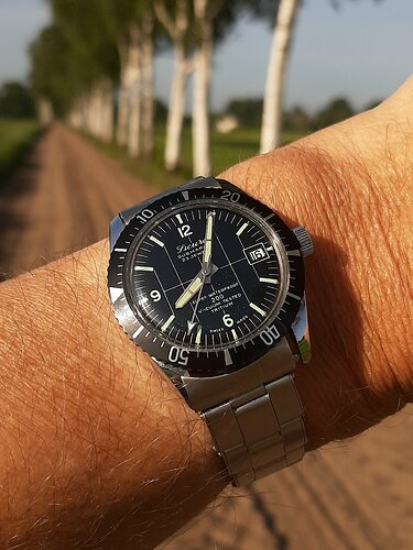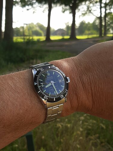 Dan toch een stevige portie ‘elbow-grease’ gebruikt om het glaasje terug mooi te krijgen. Aardig gelukt. Ook op een perfect passende racy suède ‘single pass’ nato gehangen. Heerlijke combo. Nu moet ze nog een beurt krijgen, waarbij ook de stofjes van de plaat gehaald gaan worden. Then we’re good to go