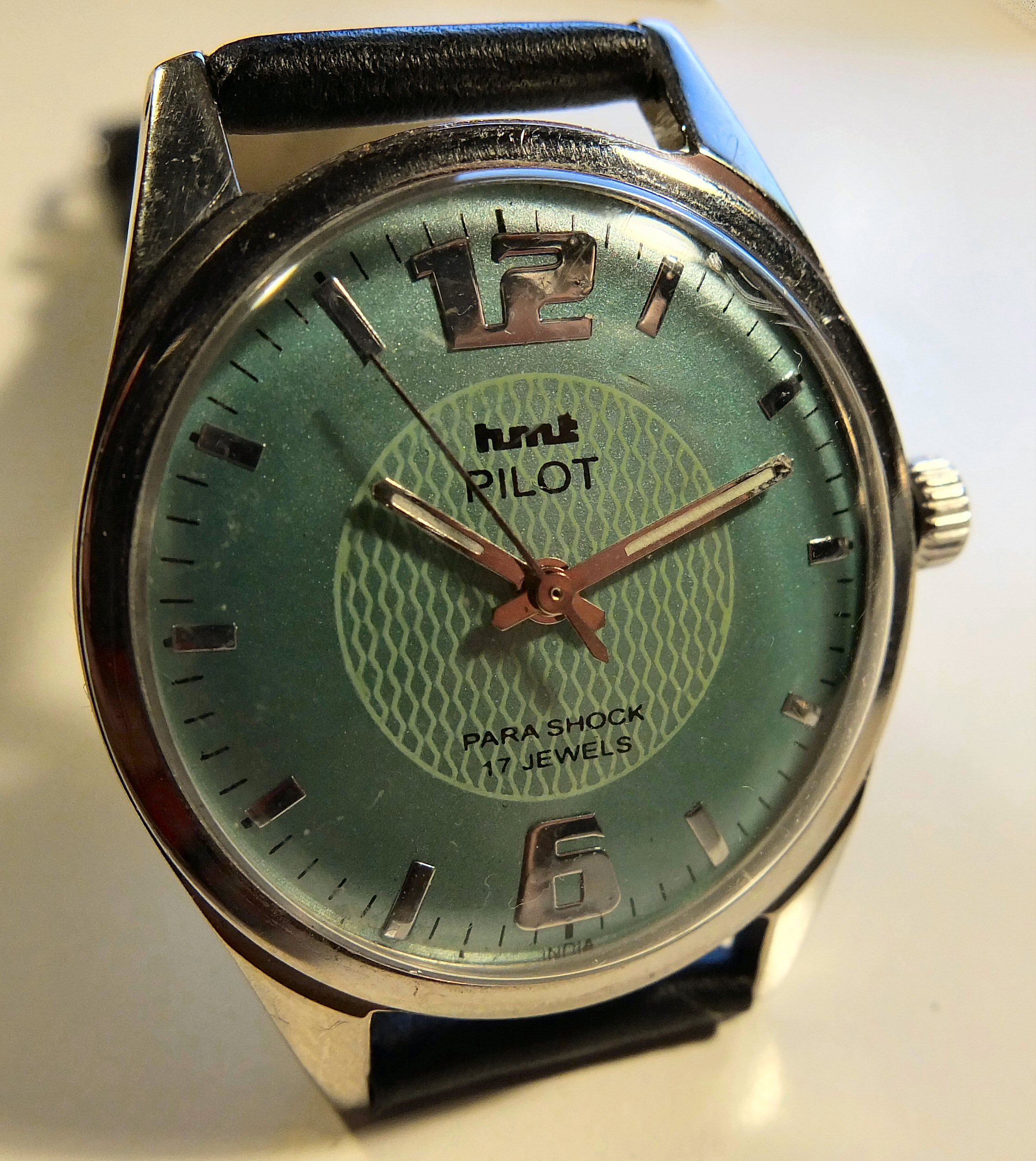 Als troost voor alle ellende en ter afsluiting nog één fotootje van een van mijn HMT’s waarvan ik denk dat ie origineel is, maar helemaal zeker weet je het nooit. Technisch is deze in ieder geval in orde. En hij komt ook niet via Ebay rechtstreeks uit India, maar van een aardige verkoper op de Rikketik die 'm aan mij verkocht voor 5 euro, want er zwierf een markertje los onder het glas. En dat was thuis gauw gefikst!