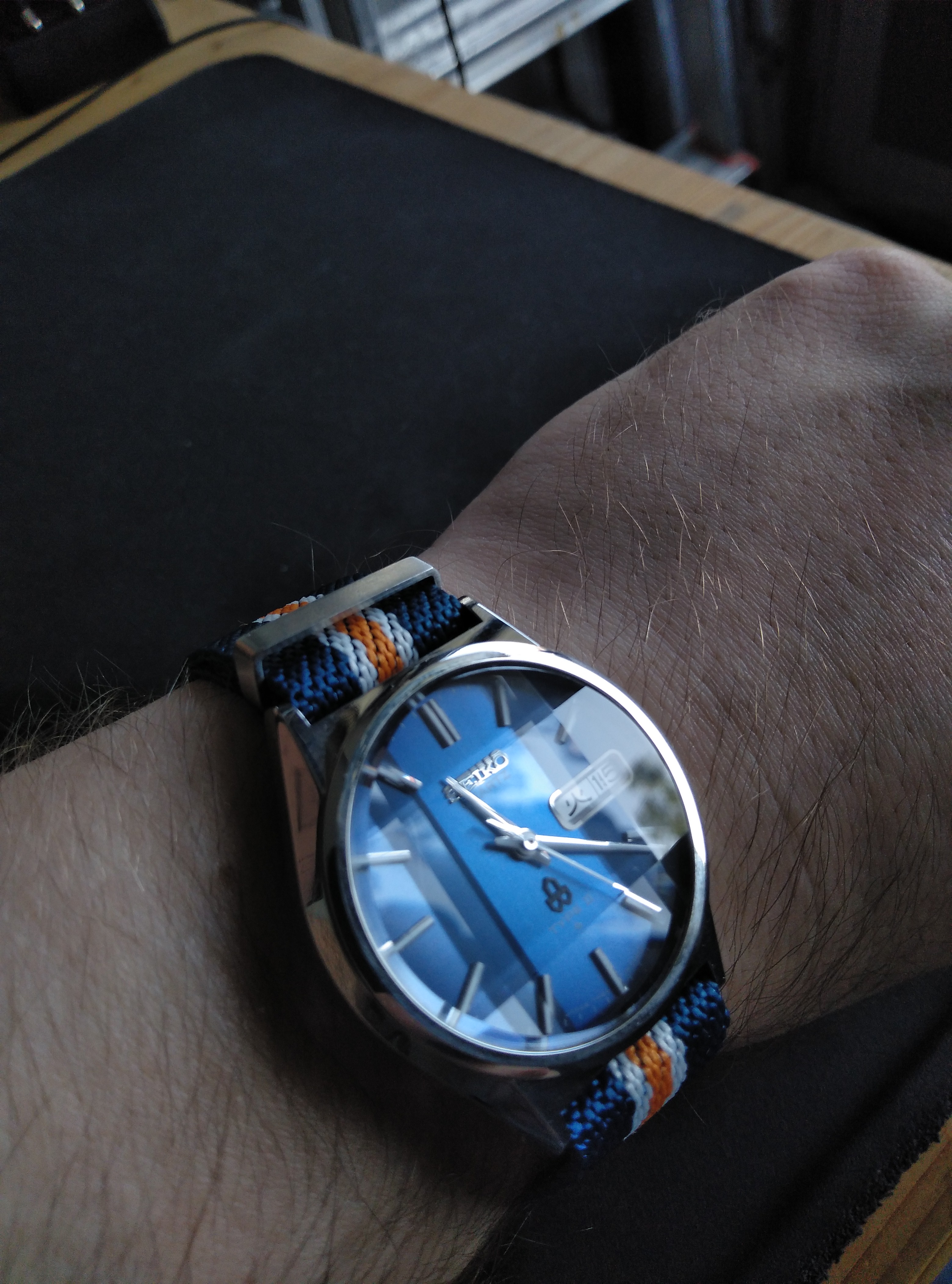 Inderdaad, precies deze, tenminste dat is zoals ik me 'm herinner. De blauwe wijzerplaat zoals de getoonde Seiko. Zonde he? voor eeuwig weg. Maar ja, ik had er toen geen verdriet van, horloges interesseerden me niet zo, dat kwam veel later pas. Er is sinds ik besmet ben met het horlogevirus wel het een en ander voor terug gekomen, dus eigenlijk ben ik nu heel gelukkig…