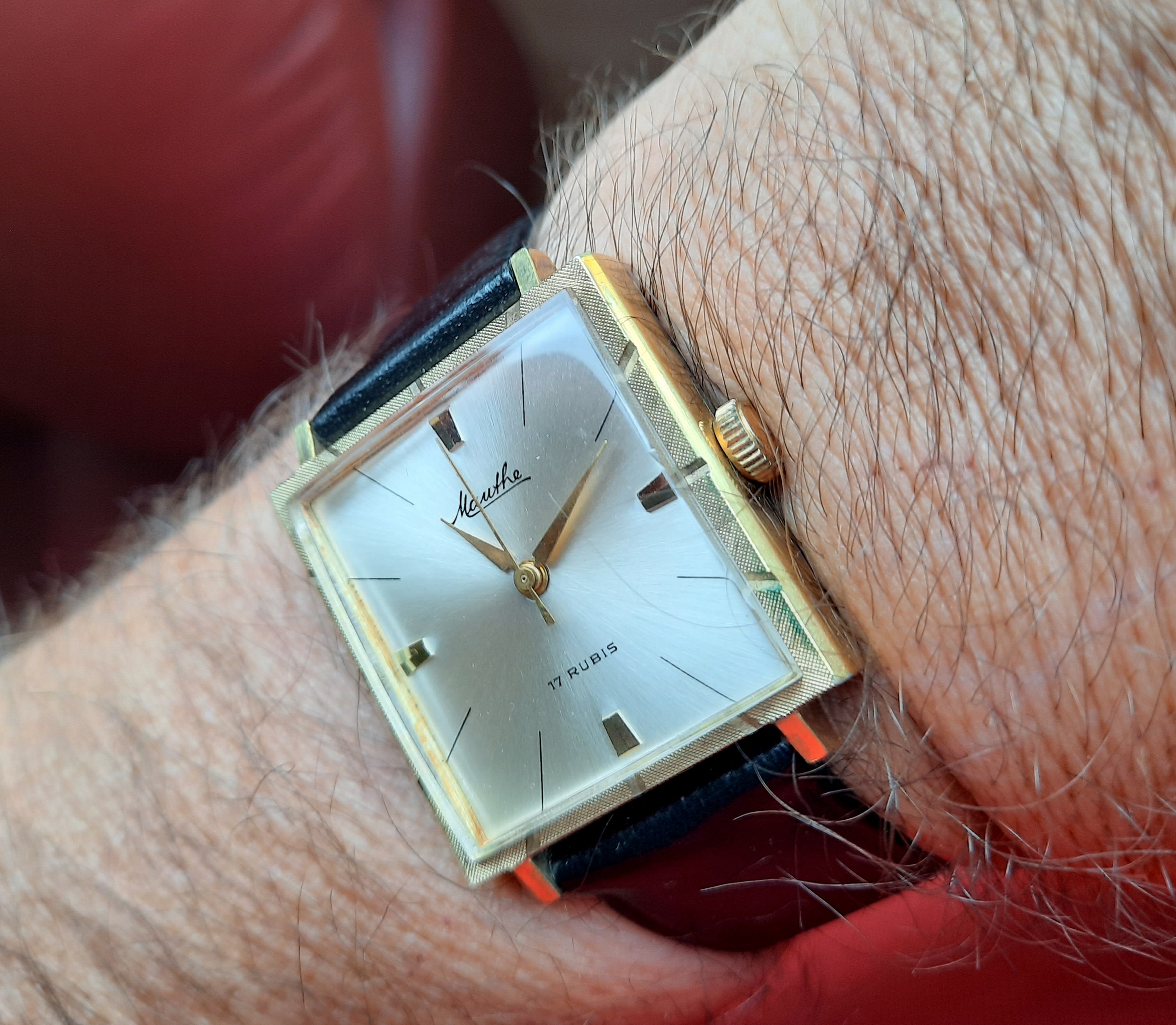 Wel een horloge dat je onder het juiste licht moet fotograferen. Die gilt dial is wel een beetje verdonkerd dus als je even bij de verkeerde lichtval kijkt lijkt de hele plaat wel zwart.