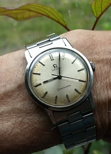 Deze aanwinst uit 2021 (gekocht als non-runner) heb ik net opgehaald bij de horlogemaker. Veel problemen in het uurwerk, allerlei tandwielen moesten vervangen worden, balansas was zo krom als een hoepel etcetera. Het originele glaasje was van mineraalglas en zag eruit als matglas. Dat is vervangen door een saffierglaasje.