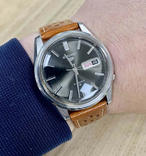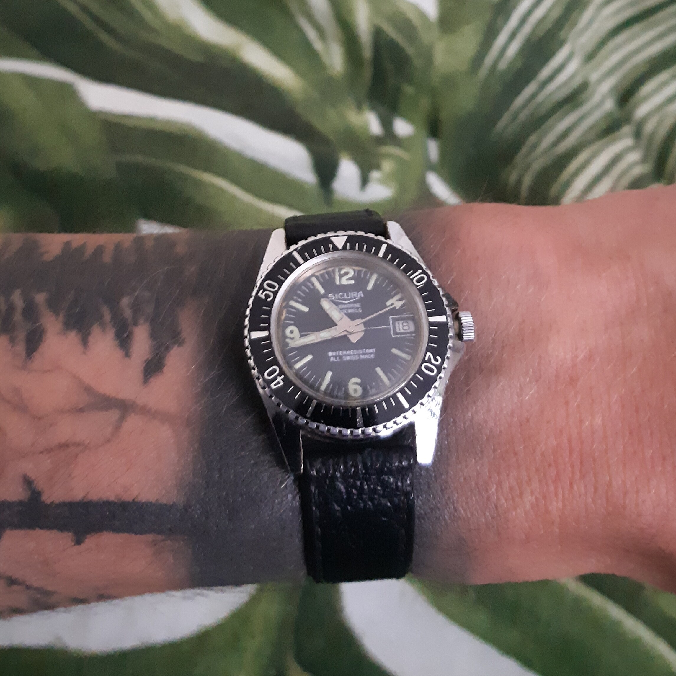 Ja, dat lijkt me wel wat. Nadeel is wel dat letterlijk àl mijn andere horloges een bruine band hebben (nou ja, op 1 na die een schakelband heeft) en dat zwart natuurlijk beter kleurt bij een grijze pantalon en bijpassend overhemd. Wellicht zwarte kroko of hagedis eens bekijken.