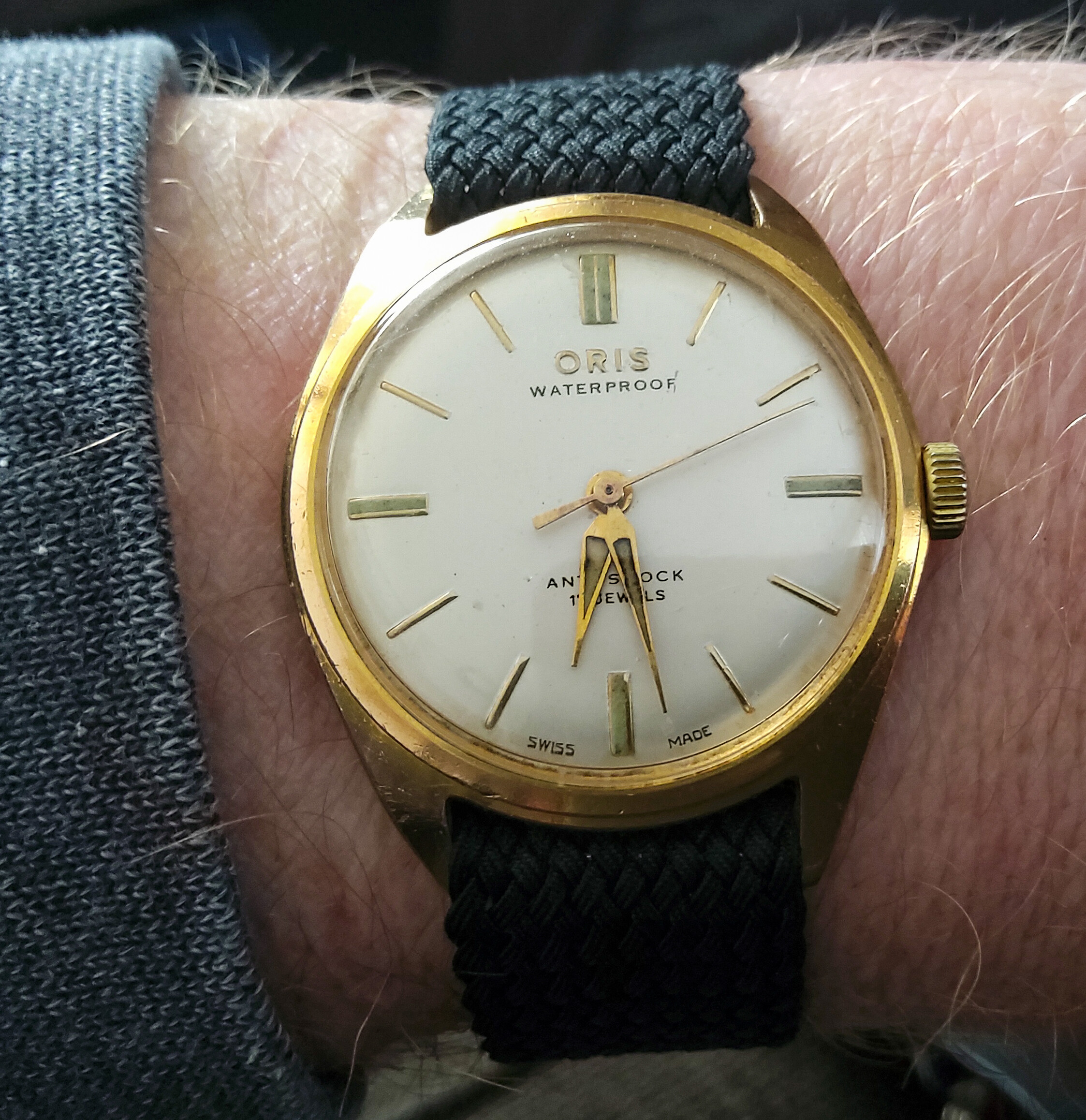 Deze Oris heb ik gisteren in orde gemaakt. Een aanwinst van de rikketik van afgelopen zondag. Het tandwiel op de veerton miste een groot aantal tanden, maar na veel zoeken door duizenden onderdelen heb nog een nieuw tandwiel gevonden. Het uurwerkje heb ik verder schoongemaakt en weer netjes gemonteerd en gesmeerd. De kleine Oris loopt erg mooi nu. Het kaliber is Oris 392.