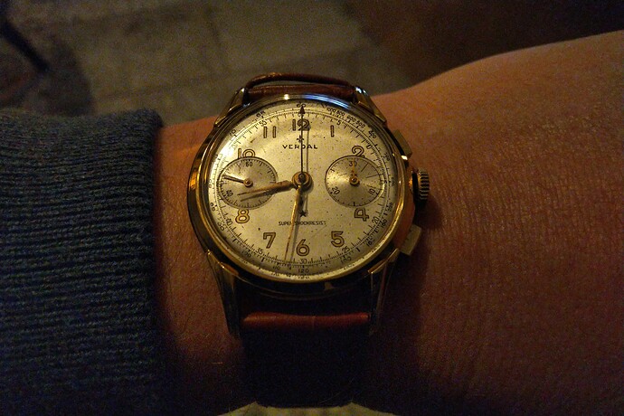 Ik ben een relatieve leek hoor, maar is de lay-out bij de meeste vintage chrono’s niet min of meer hetzelfde? Ik zie aan de buitenkant niet of er een Venus 188 of een Landeron 48 in zit…
