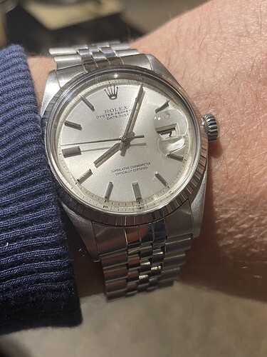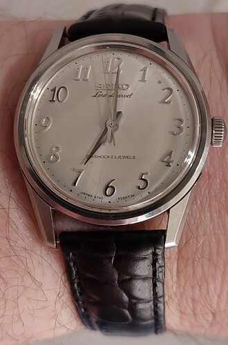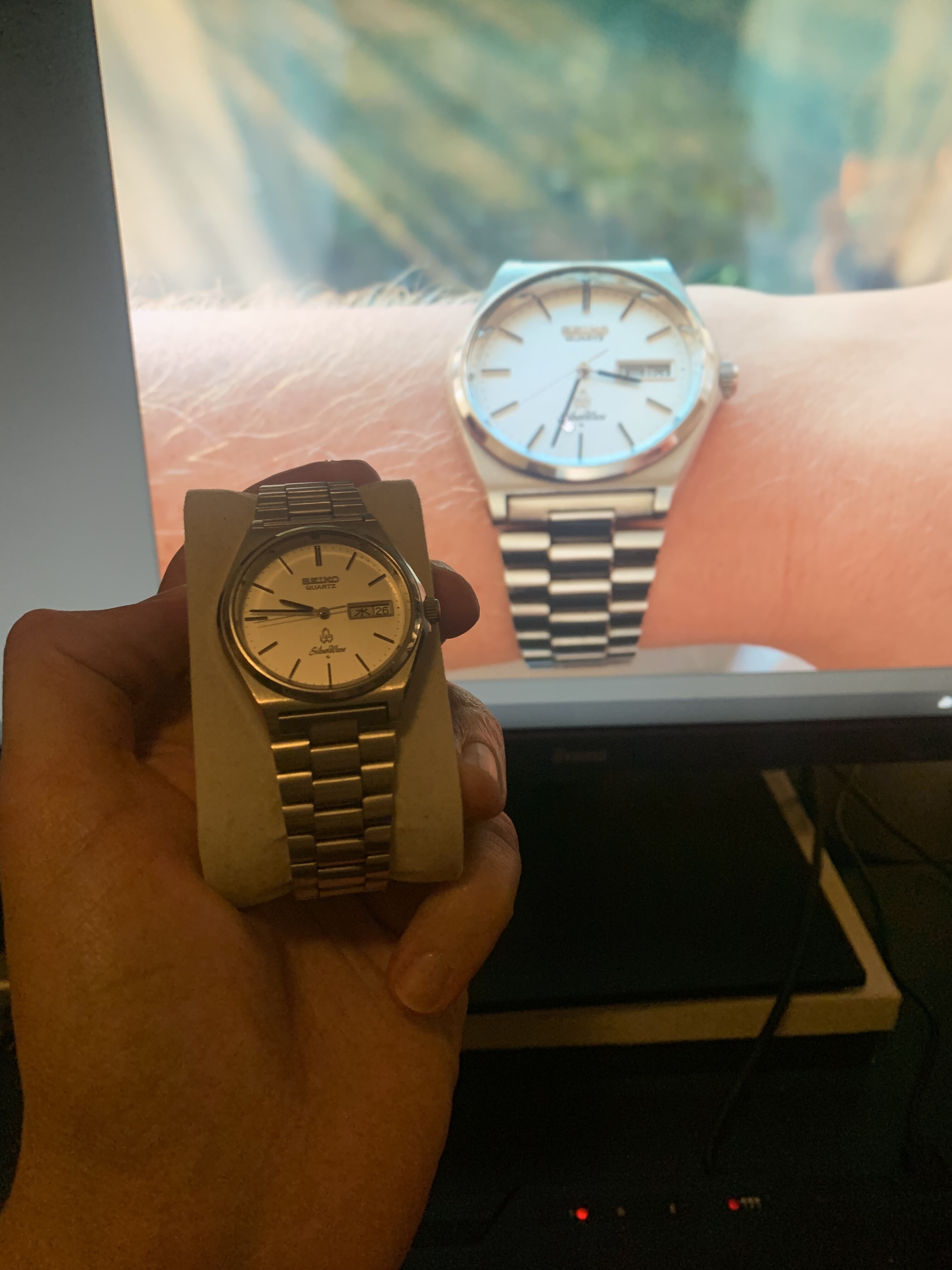 Jouw kast heeft een andere kleur goud, andere pushers, andere indices, andere bedrukking van de wijzerplaat (telemeter schaal, andere tekst), andere lugs, enz. enz. Eigenlijk vind ik ze helemaal niet op elkaar lijken, behalve dan dat het allebei vintage chrono’s zijn en dat ze beiden zeer fraai zijn