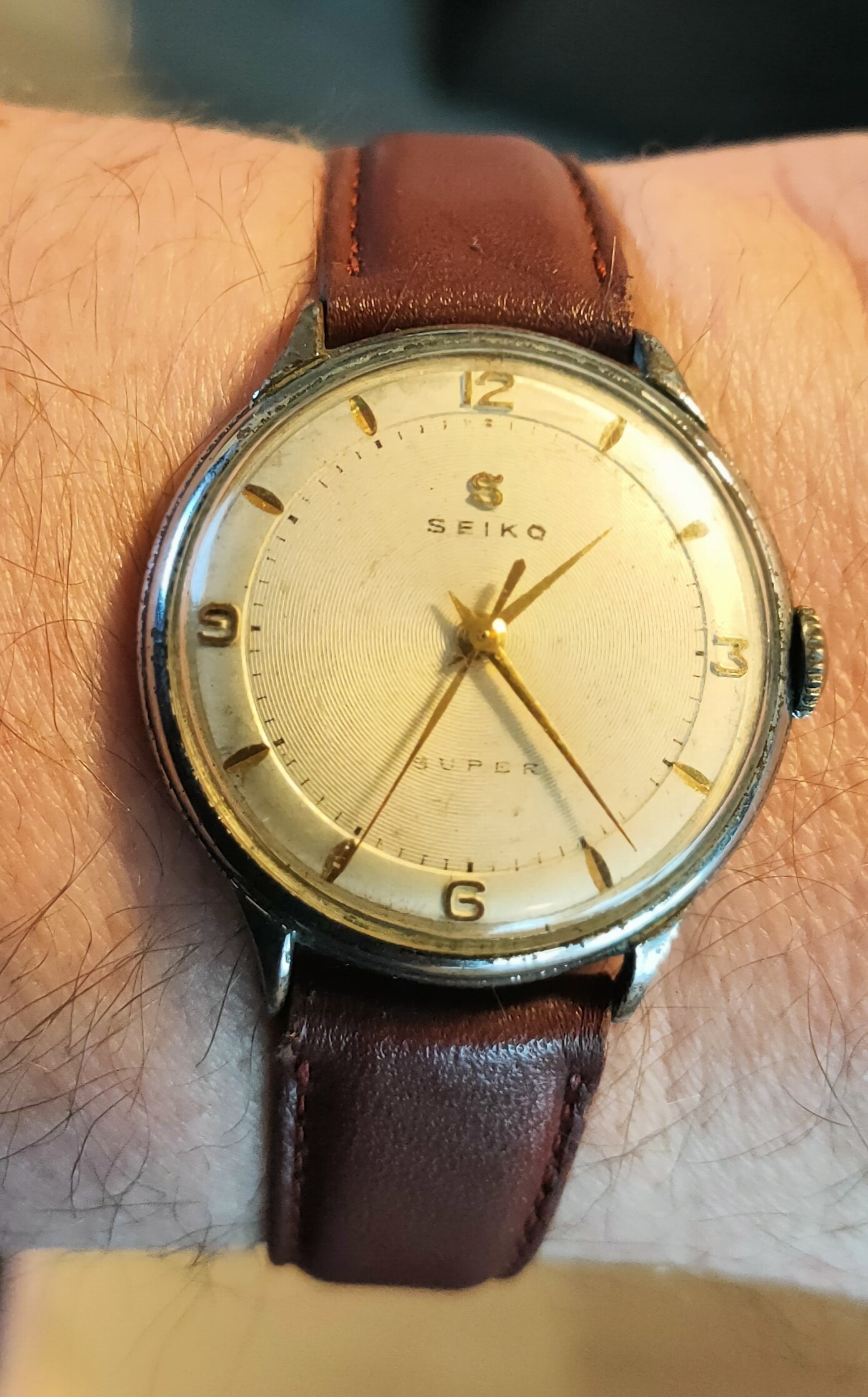 Voor vanavond deze Seiko Super uit 1955. Het is niet mijn allermooiste Seiko, maar bijzonder genoeg om in mijn collectie te houden.