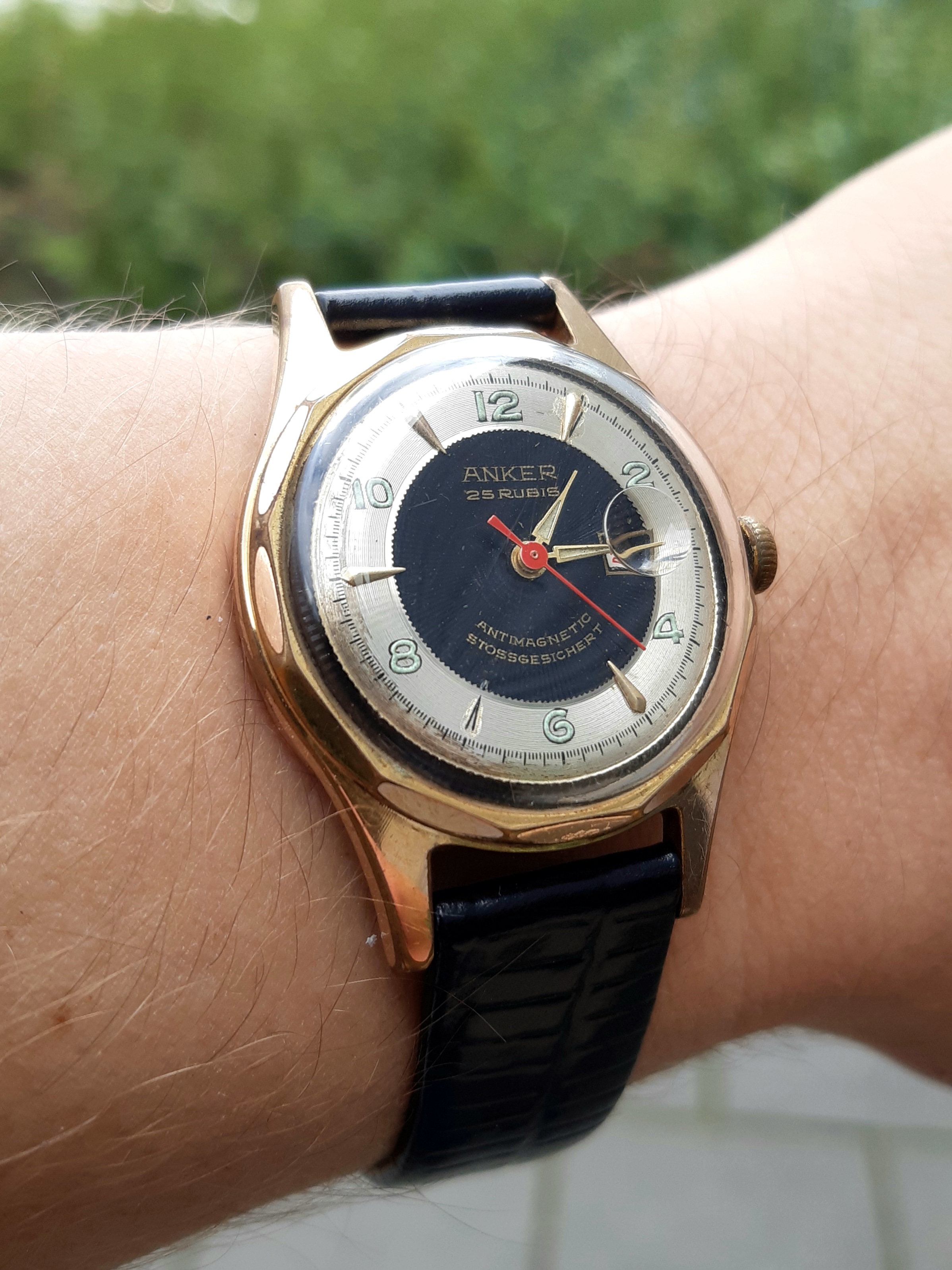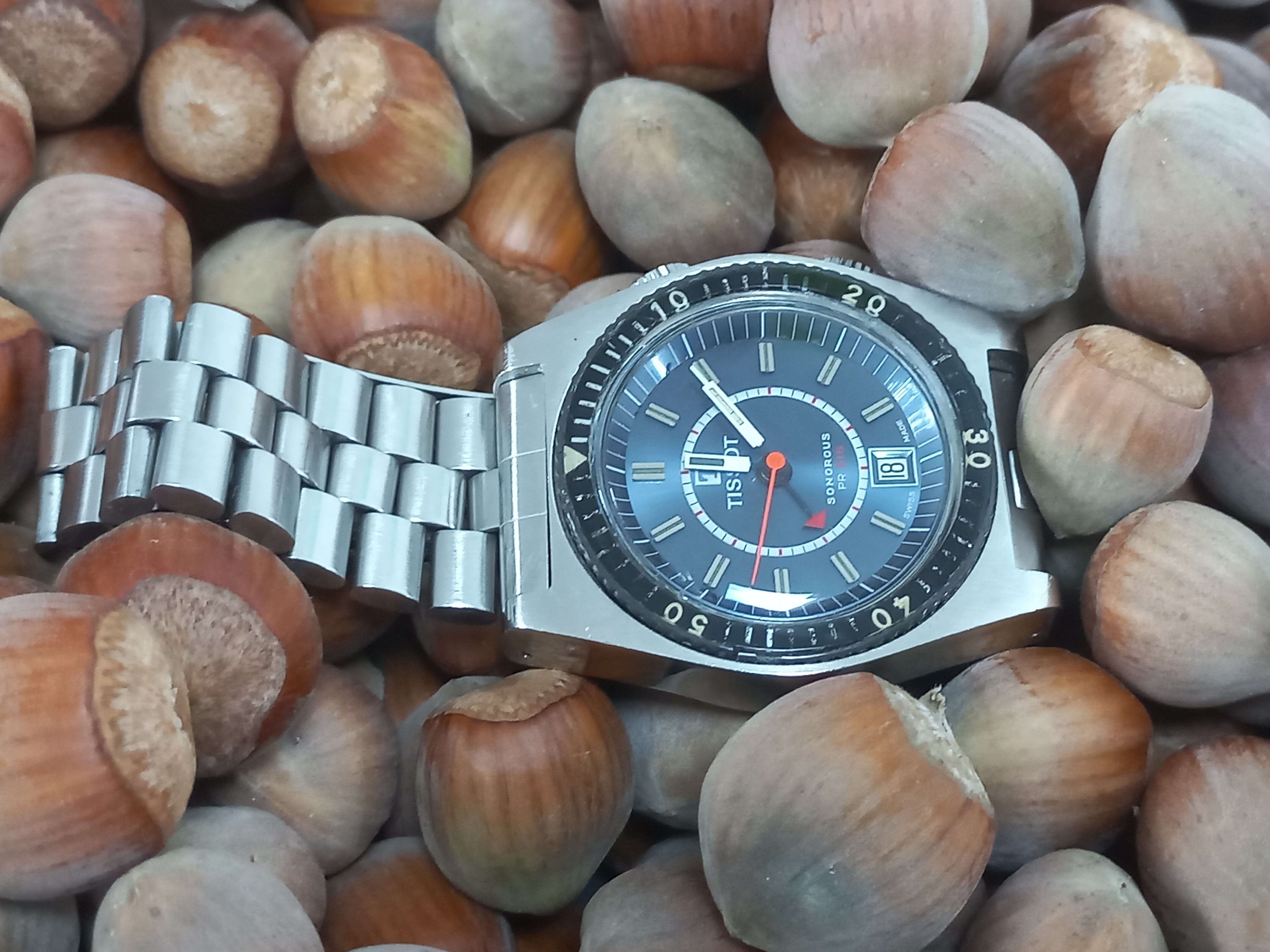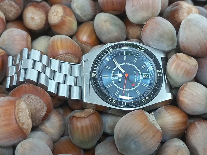 Vandaag nog eens de gare wiet-rokende granddaddy van de collectie om de pols: de Mighty Lisram, het “Swiss Model” met z’n “17 medals”. Ook plots te binnen geschoten dat ik nog een nieuw bandje in de verpakking liggen had dat ik besteld had tijdens de poll in het Lisram Horror Story topic voor @Lexaf voorstelde een custom bandje te maken. Dus beiden eens geprobeerd: