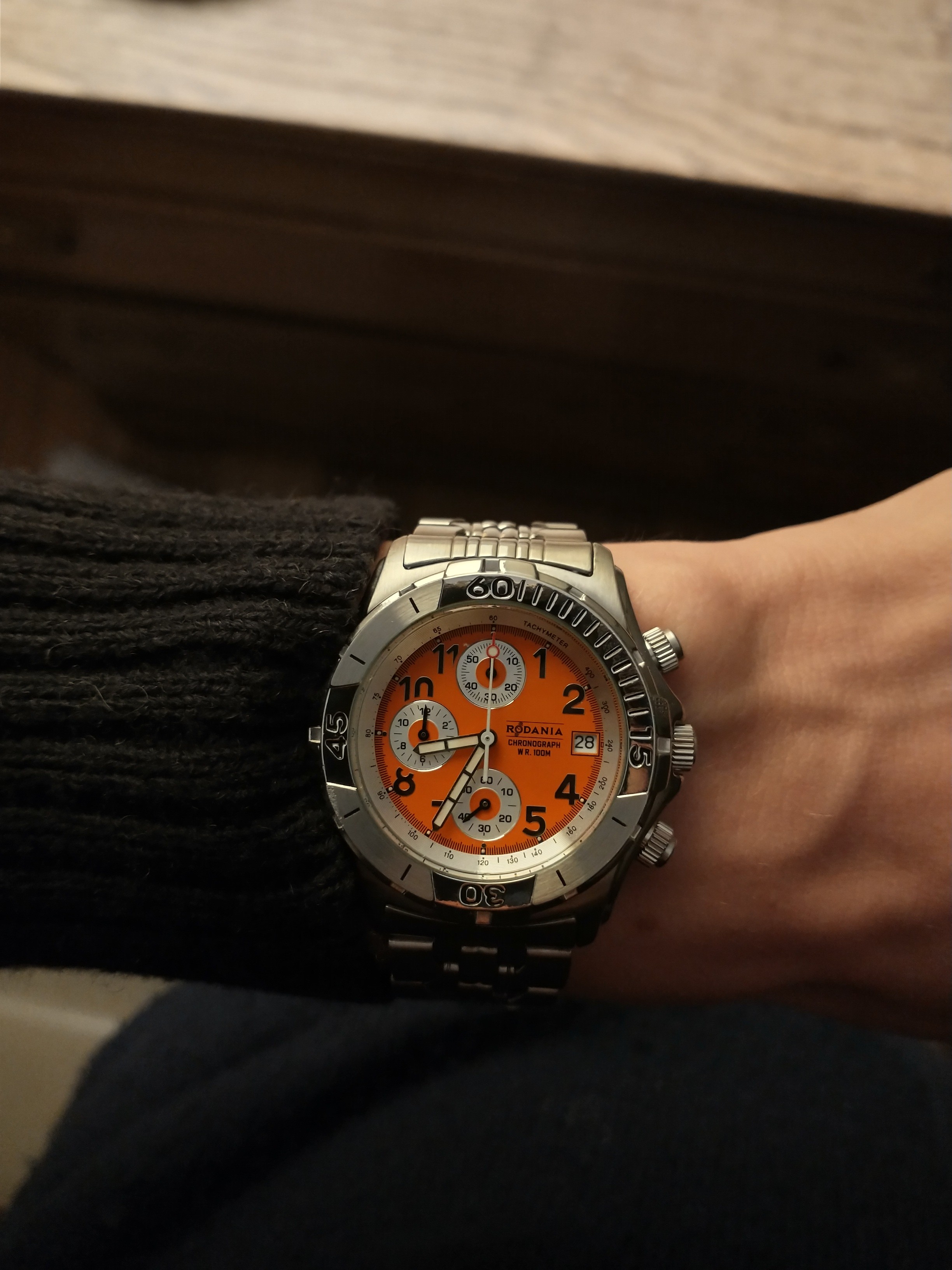Deze rodania chrono. Pas nieuw binnengekomen. Even poetsen, nieuwe batterij en huppa. Ref: CT21942. Op internet niets van te vinden dus als iemand wat weet, alle bijkomende info is gewenst