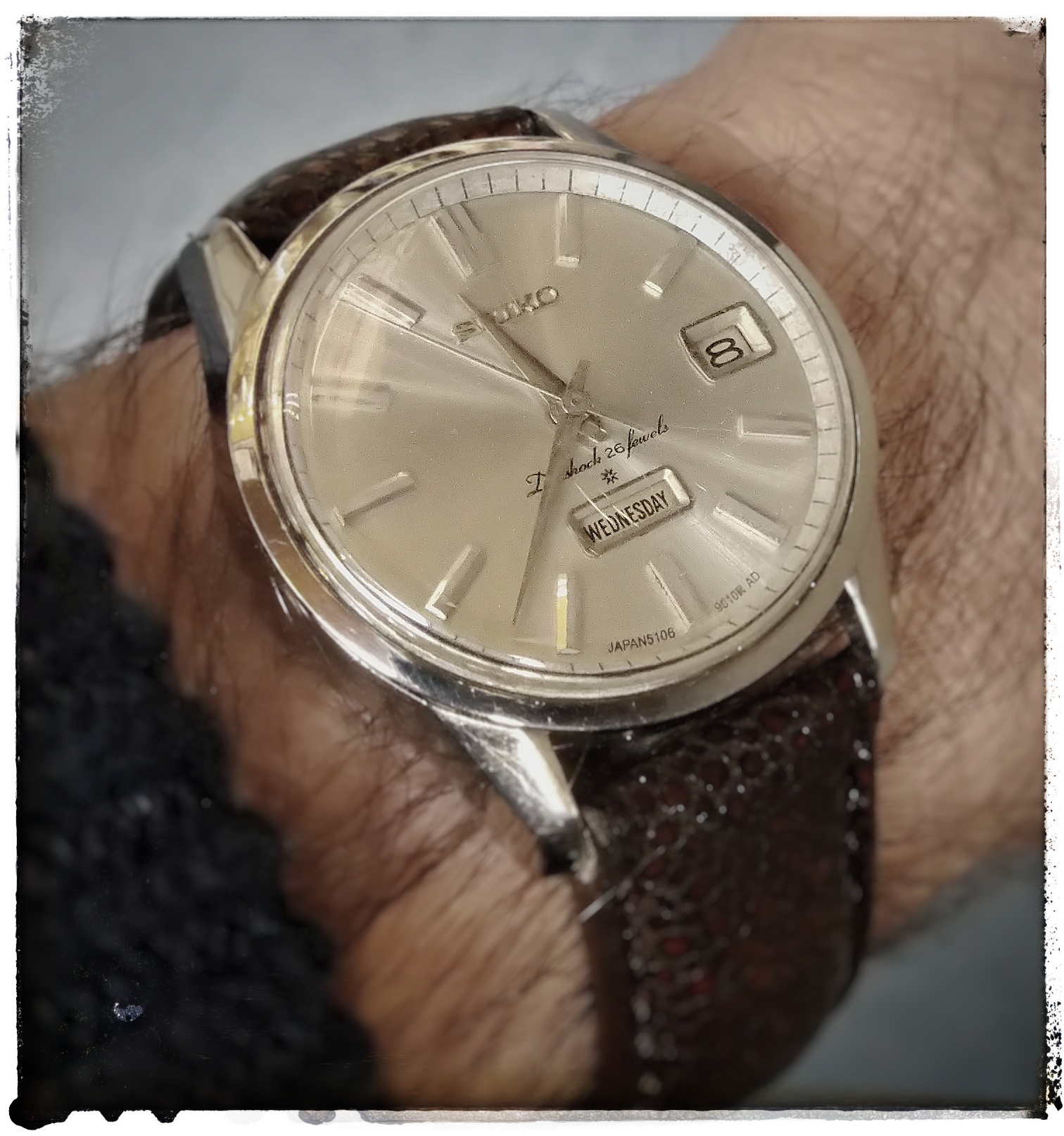 Vandaag een bijzondere, ik ben niet zo van het goud of goldcapped, maar de man die hem oorspronkelijk kocht (ongetwijfeld bij een degelijke Bossche juwelier) was mijn opa en zo heel af en toe draag ik zijn horloge,
