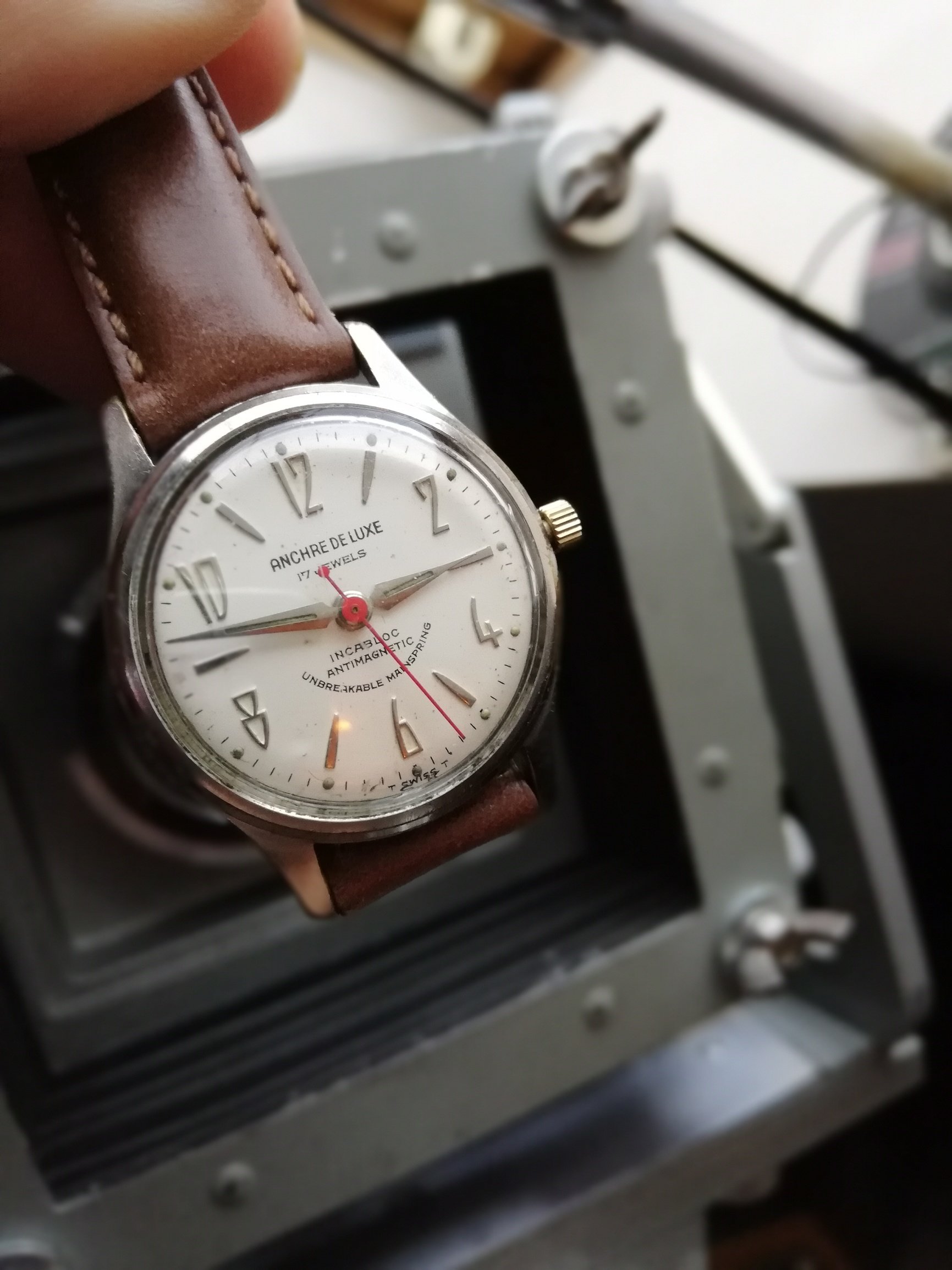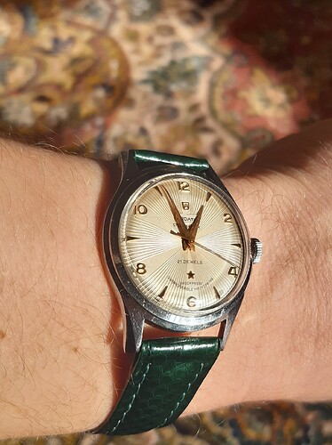 Google er maar eens over; indrukwekkend wat die Russen op horlogegebied voor elkaar hadden, ze maakten echt alles zelf. Dit alarmhorloge is vanaf de 60s in optisch verschillende uitvoeringen gemaakt. De mijne is vermoedelijk 80s of zelf 90s. Nieuwe band gematcht met de alarmwijzer.