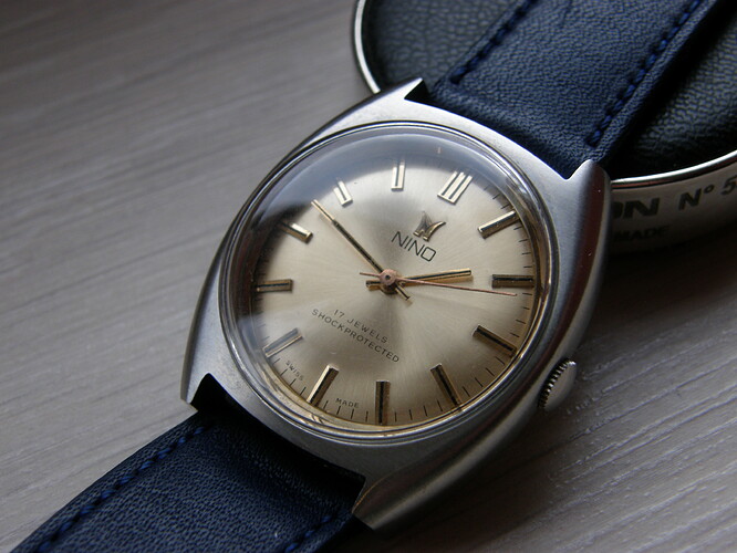 Handopwinderuurwerk met hacking, verrassend mooi afgewerkt trouwens, geblauwde wijzer, radium lume en een lastig op de foto ge vangen pareleffect wijzerplaat.