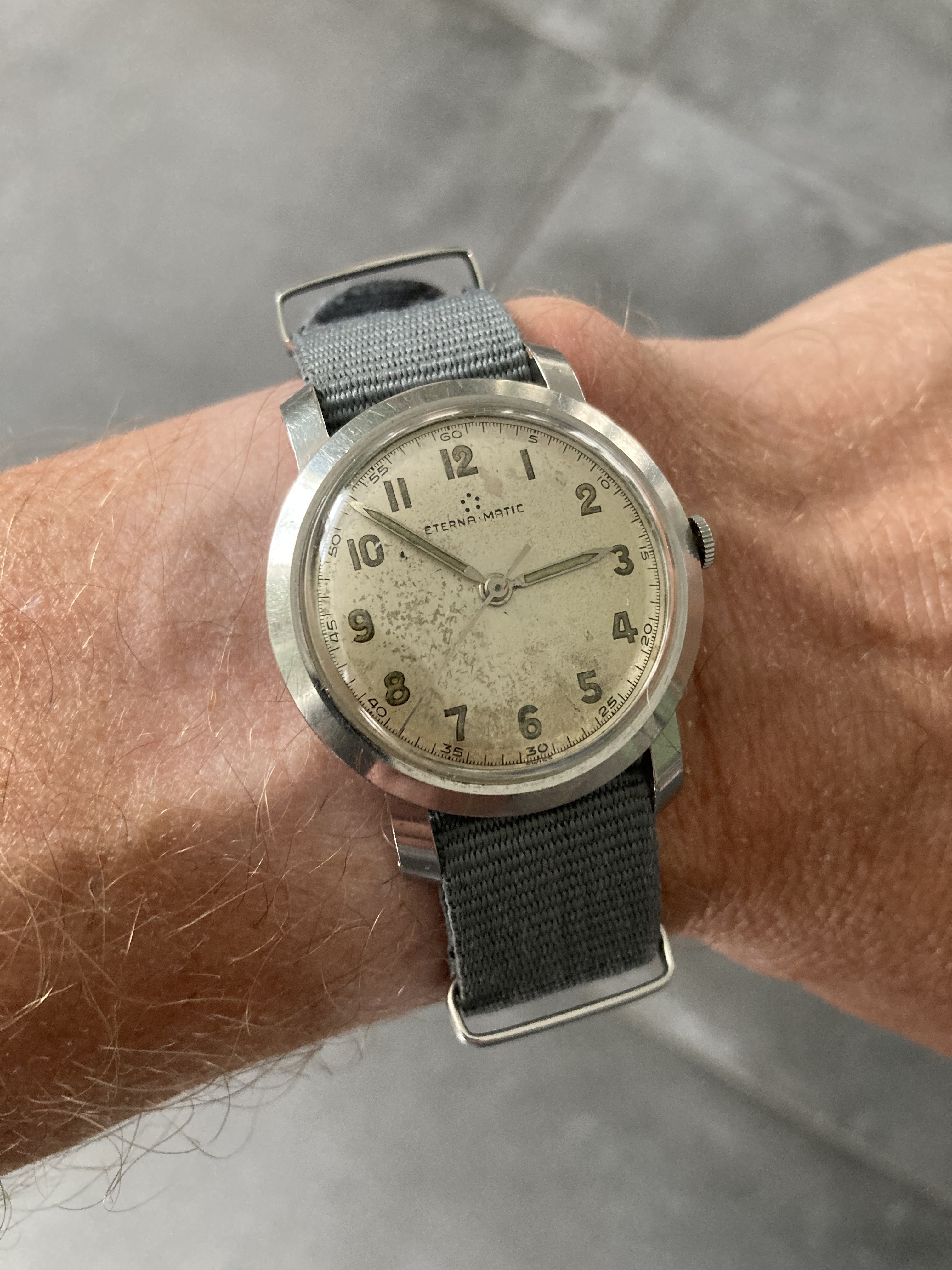 De wijzerplaat, wel in Richard stijl, lijkt een vervangende, omdat de merknaam ontbreekt. Misschien zijn de wijzerplaat en de wijzers ooit vervangen, ivm de radium op de originele onderdelen? Wie het weet mag het zeggen . Voor mij maakt het niet uit, ik vind het een pracht horloge, dat ik vooral voor het uurwerk heb gekocht.