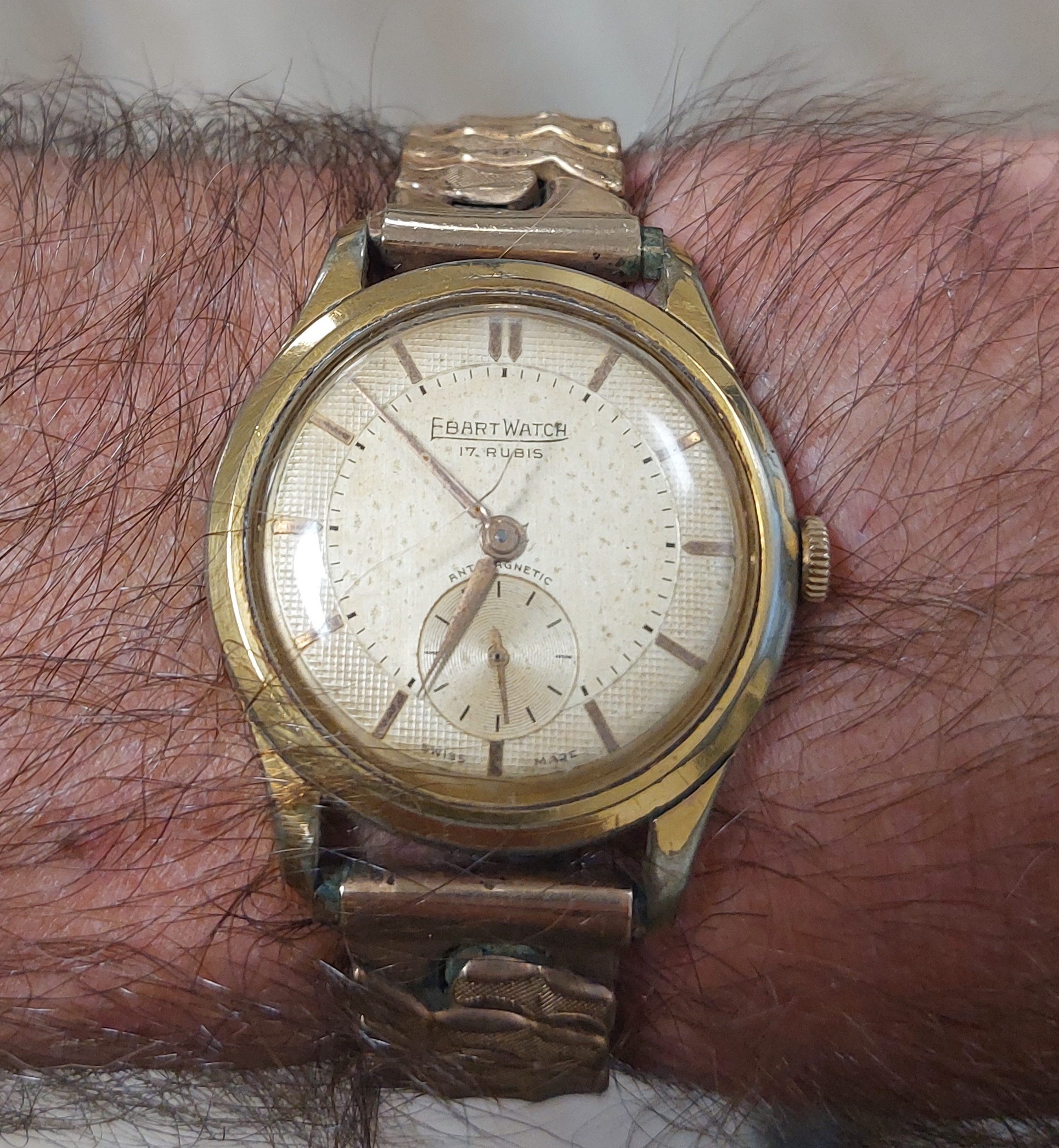 Die is 18 mm, maar ik heb de ware band al gevonden. Bruin met zwart bleek zo’n slecht idee nog niet en ik had nog een band van Pattini liggen. Bedankt voor je aanbod.