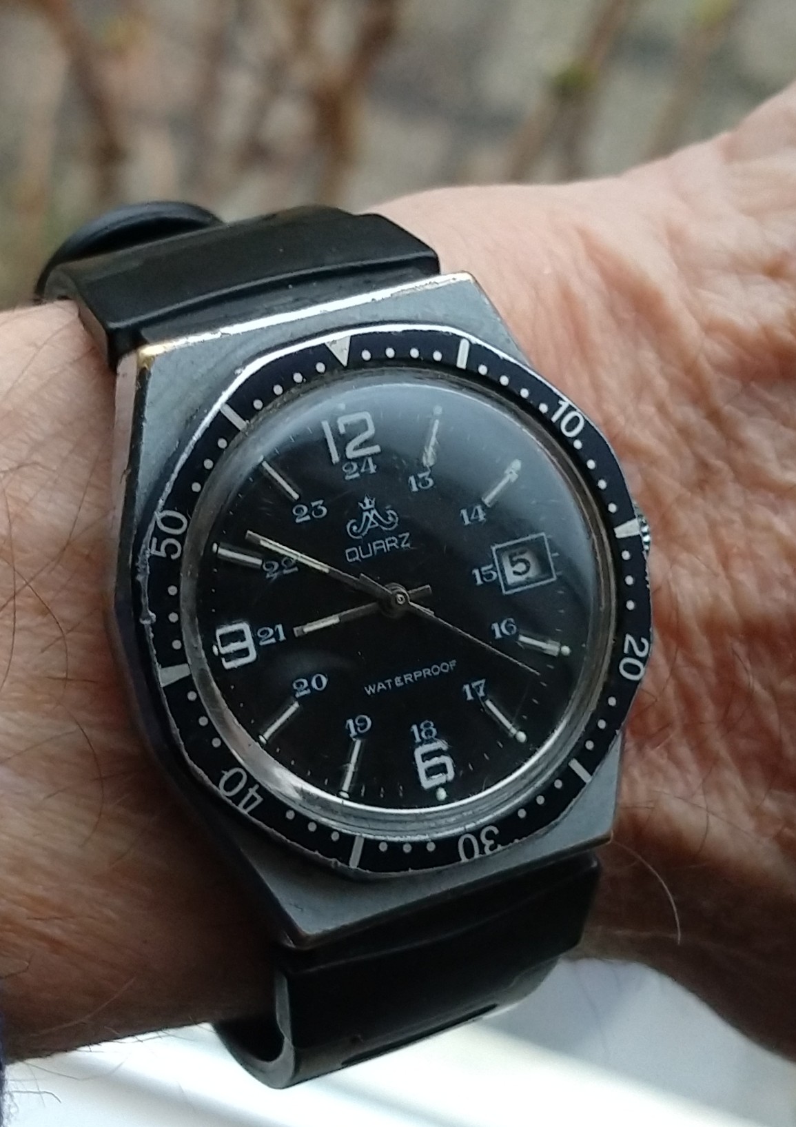 Een skindiver uit het vroegere Quelle horloge-aanbod - met eigenzinnige achtkantige bezel ![]()