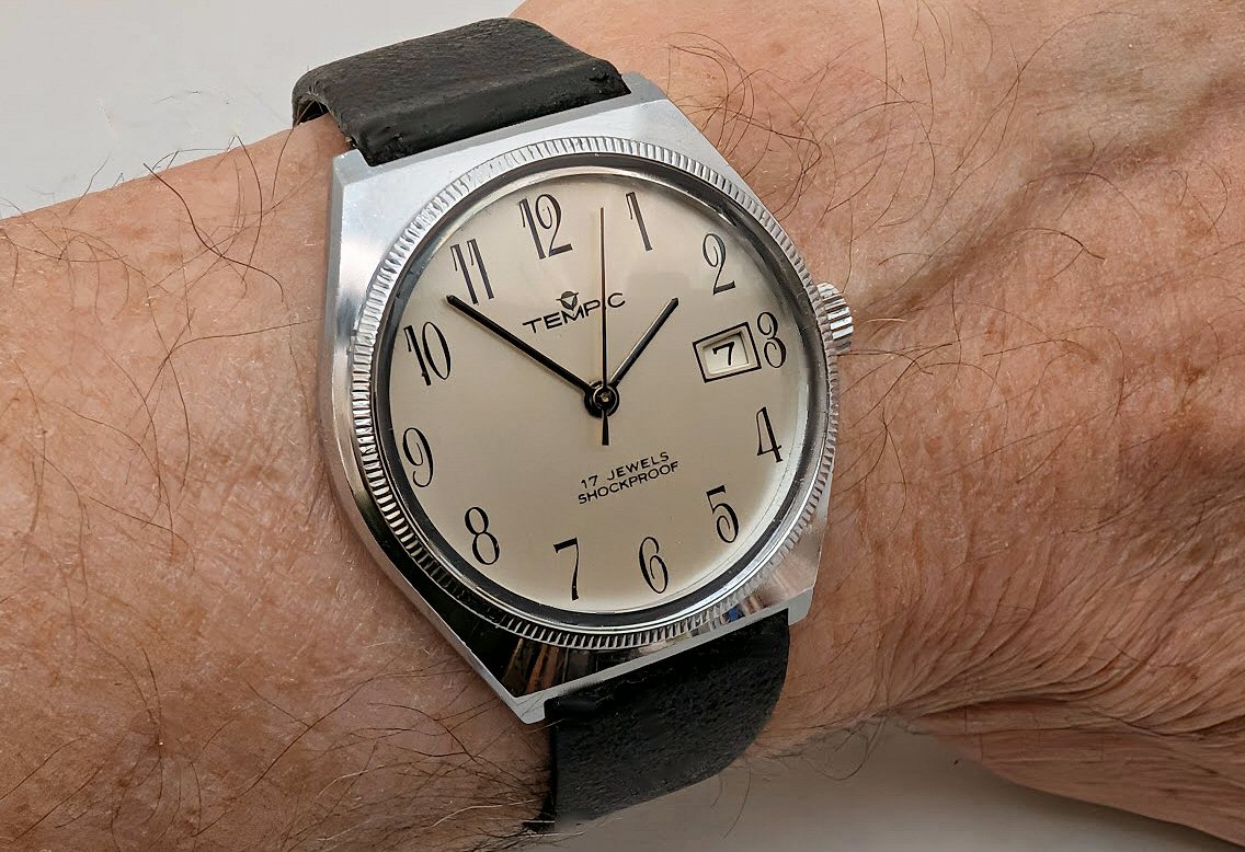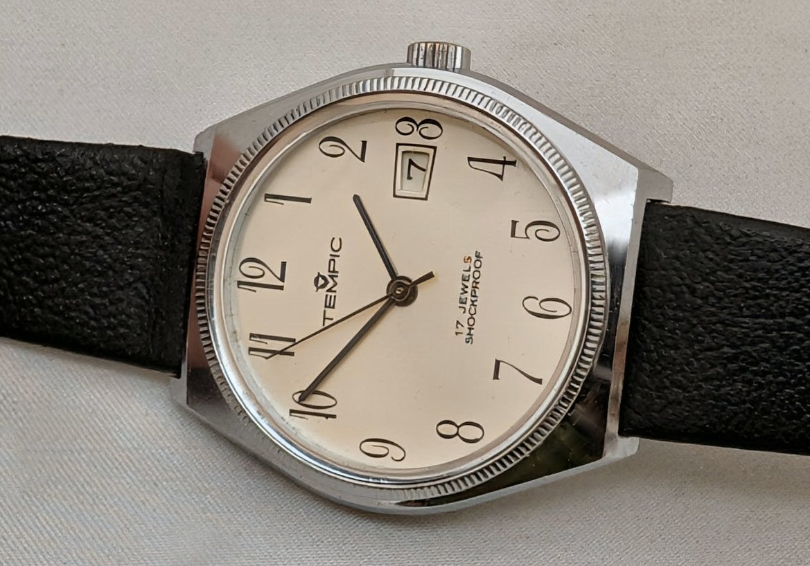 Ik had er niet speciaal naar gezocht, maar op zeker moment dook er in mijn collectie (al een paar jaar geleden) ook een Tempic horloge op. Het was (is nog steeds) in een zeer nette conditie en draait keurig op tijd zijn rondjes met het Lorsa P75 uurwerkje dat er in zit.