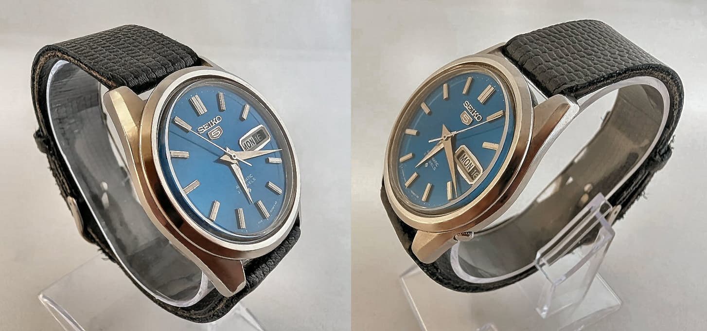 Een passend kastje was moeilijker. Lastig, want ook dit was een apart kaliber met de dag/datum op 3 uur en de kroon op 4 uur en niet op 3 driekwart zoals gebruikelijk bij 5-jes. Na een oproepje op HF bood @VmaxNL aka Patrick mij een passend kastje aan, d.w.z, hij liet het, met een door hem geplaatste bestelling speciaal extra meekomen… uit Japan! Uiteindelijk alles in elkaar gepast. Ik had mijn blauwe Seiko 5 weer in leven en de Seiko theedoos had weer een bewoner erbij.