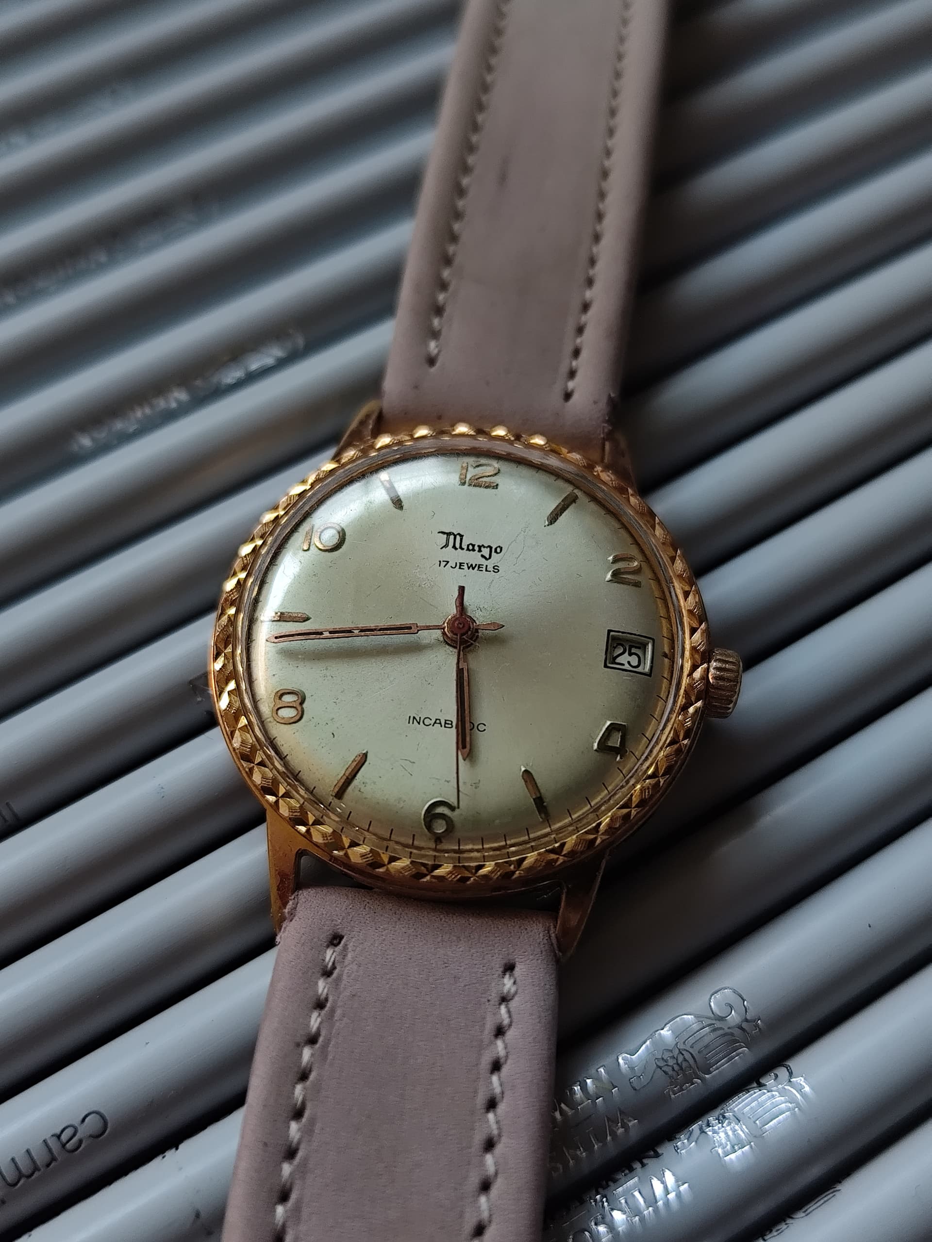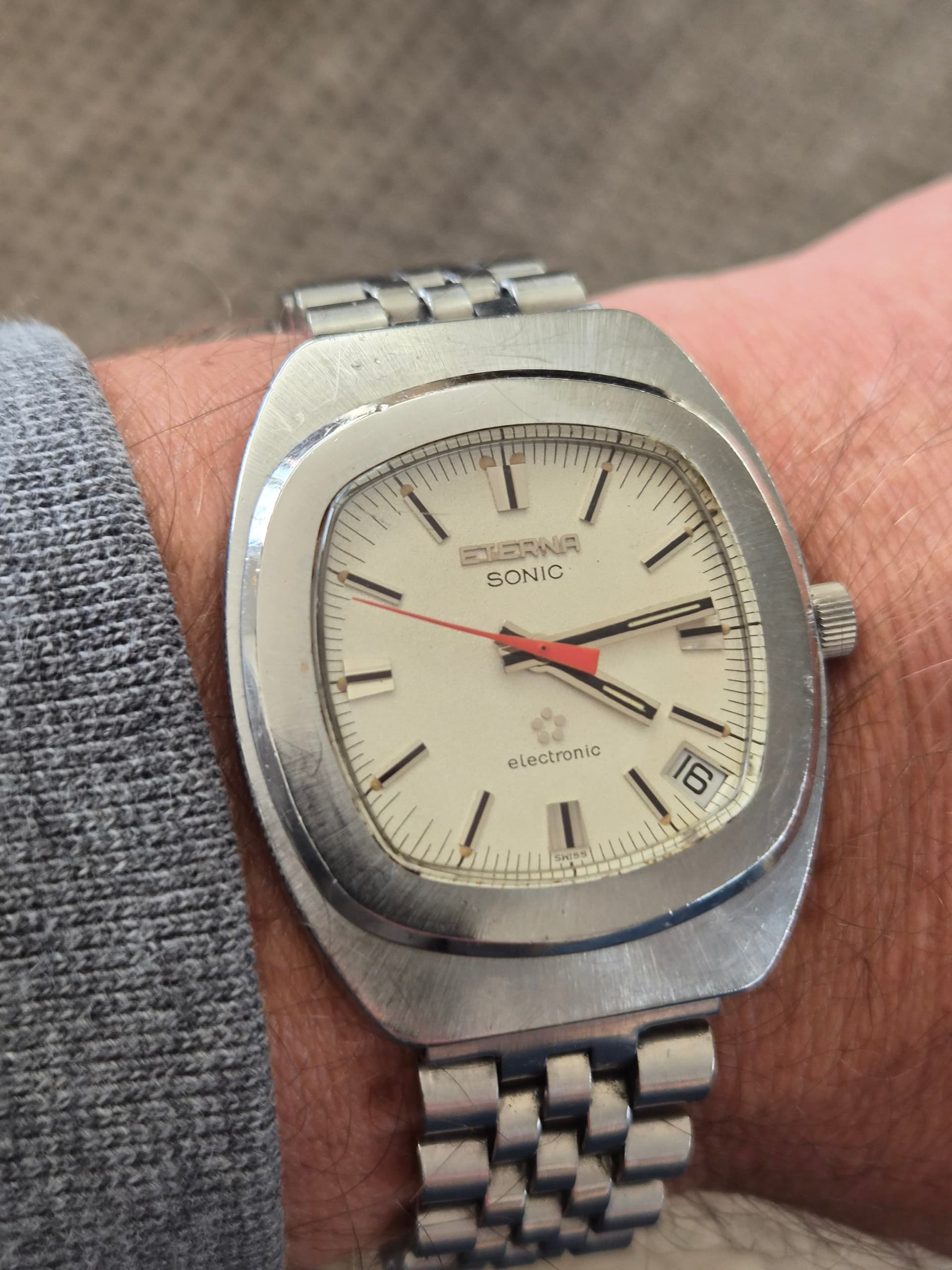 Vandaag mocht ie, na heel lang slapen, vanwege de fotosessie weer eens even aan de pols. En zowaar, ook nog met de juist ingestelde dag en datum.