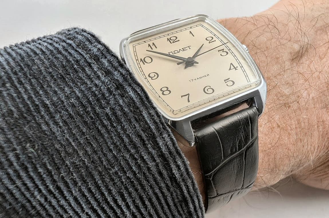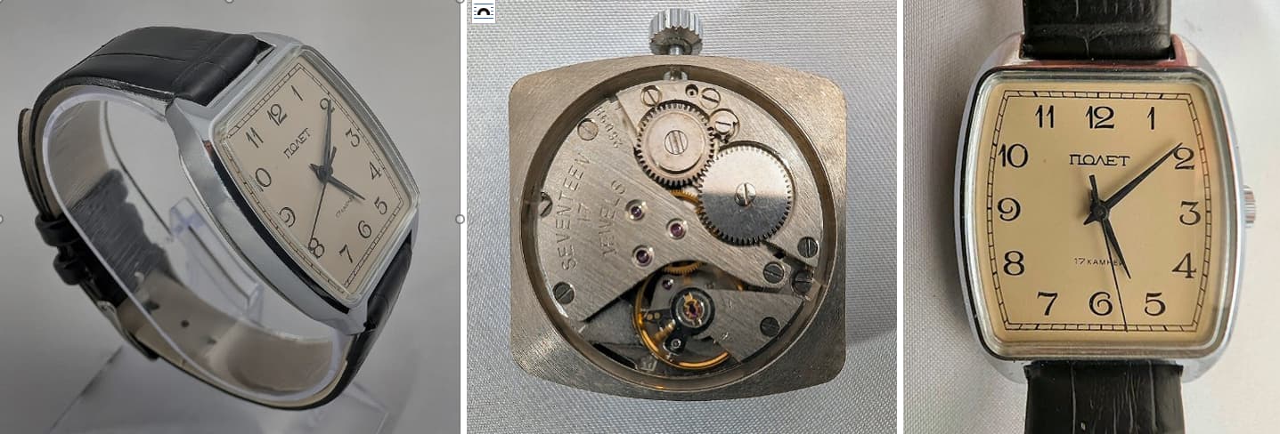 Als derde tenslotte, vanavond laat, nog een Poljot tonneau model met een caliber 2609.H als motertje. Geboren ergens in de jaren 70 van de vorige eeuw en voor zijn leeftijd nog in opmerkelijk mooie staat.