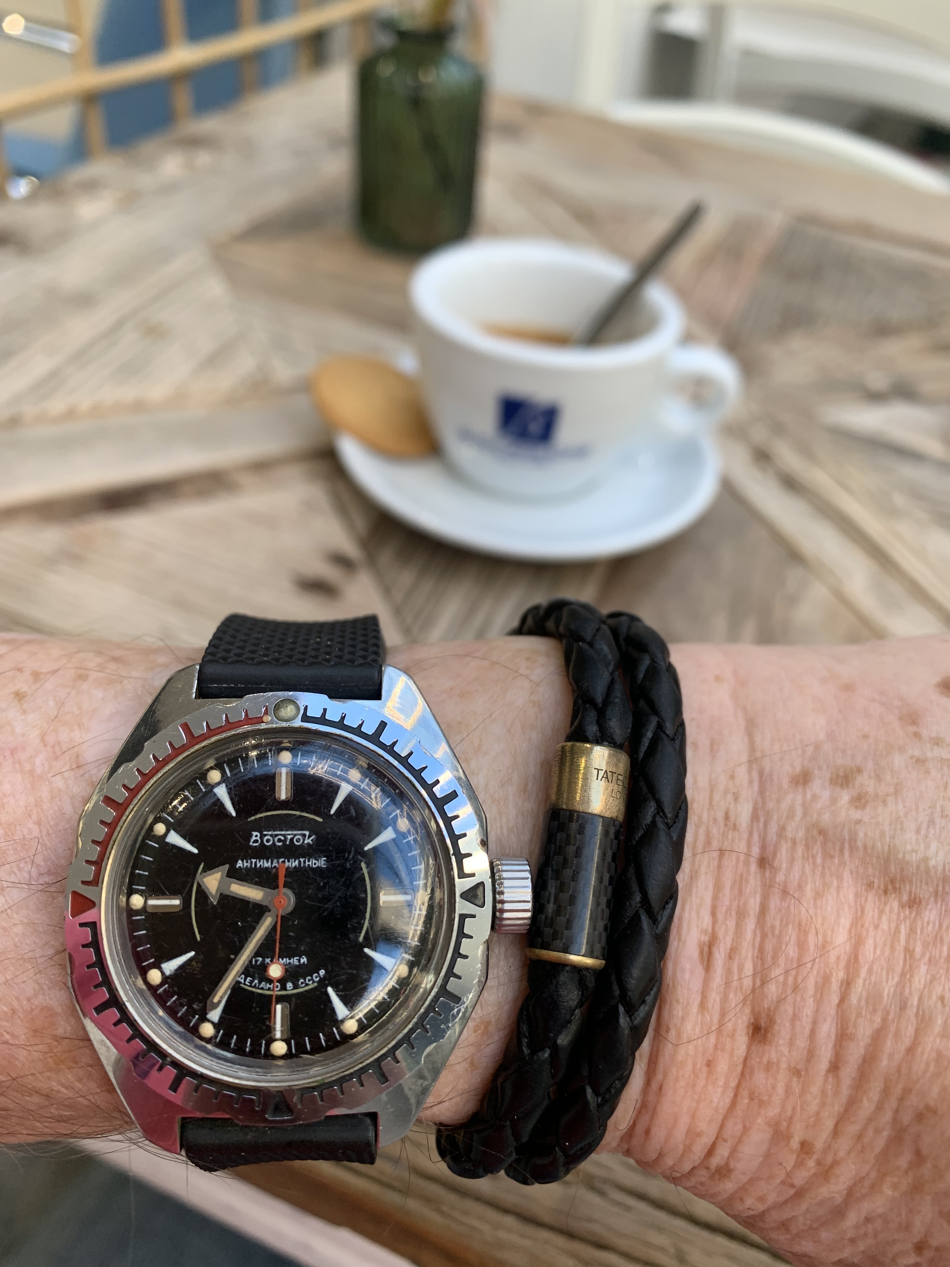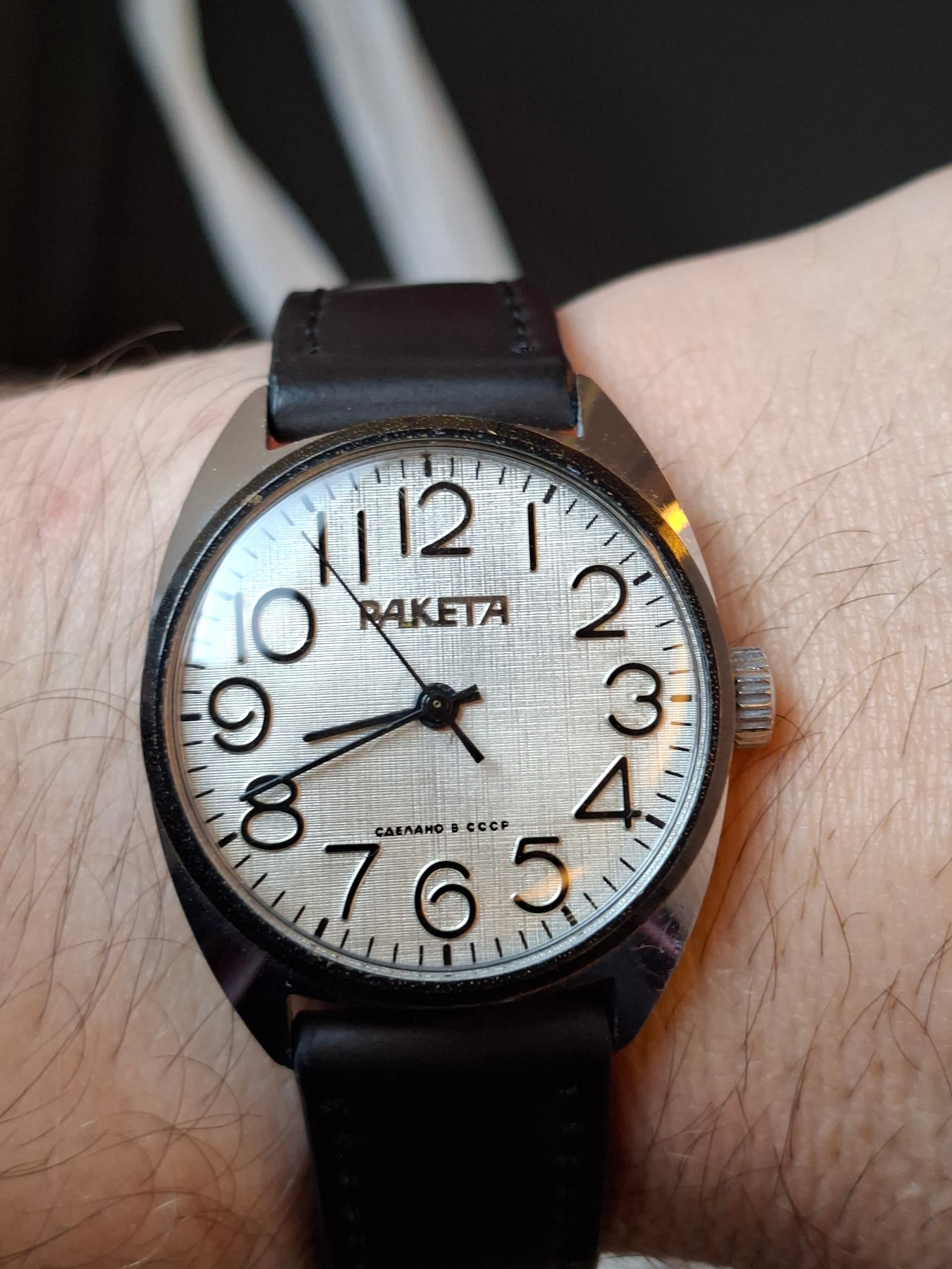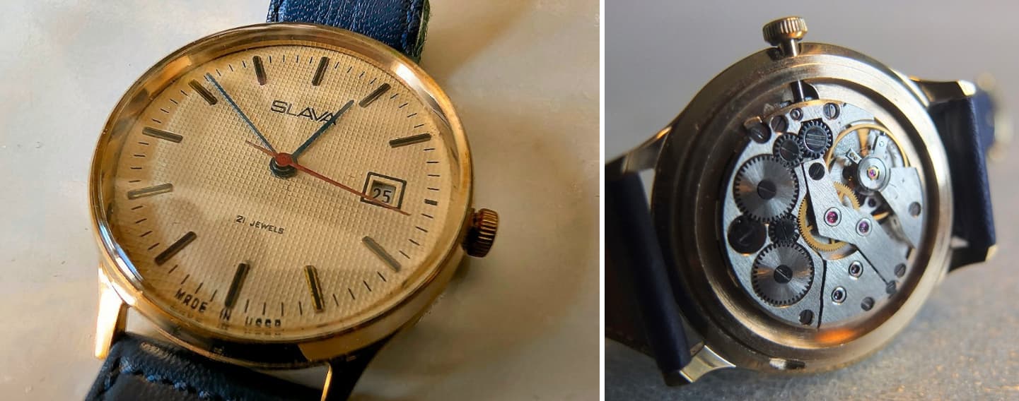 Alle drie jaren geleden aangeschaft via Marktplaats en eBay. Toen kon je nog zonder je te schamen Russische horloges kopen. Vaak nog in fraaie staat en ook nog voor een lief prijsje. Dat overkomt me heden ten dage steeds minder, de prijzen, ook voor dit soort oudjes rijzen inmiddels de pan uit.