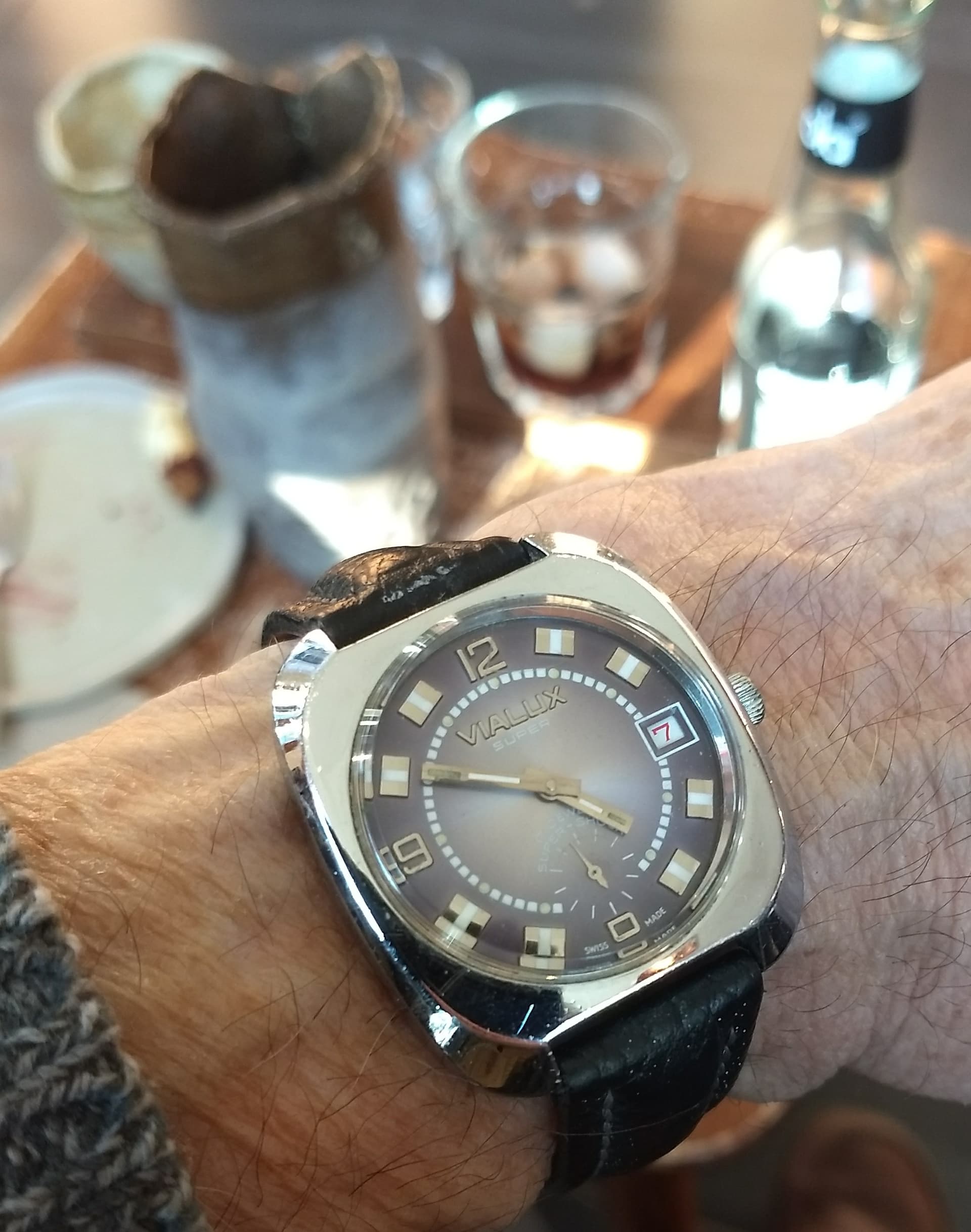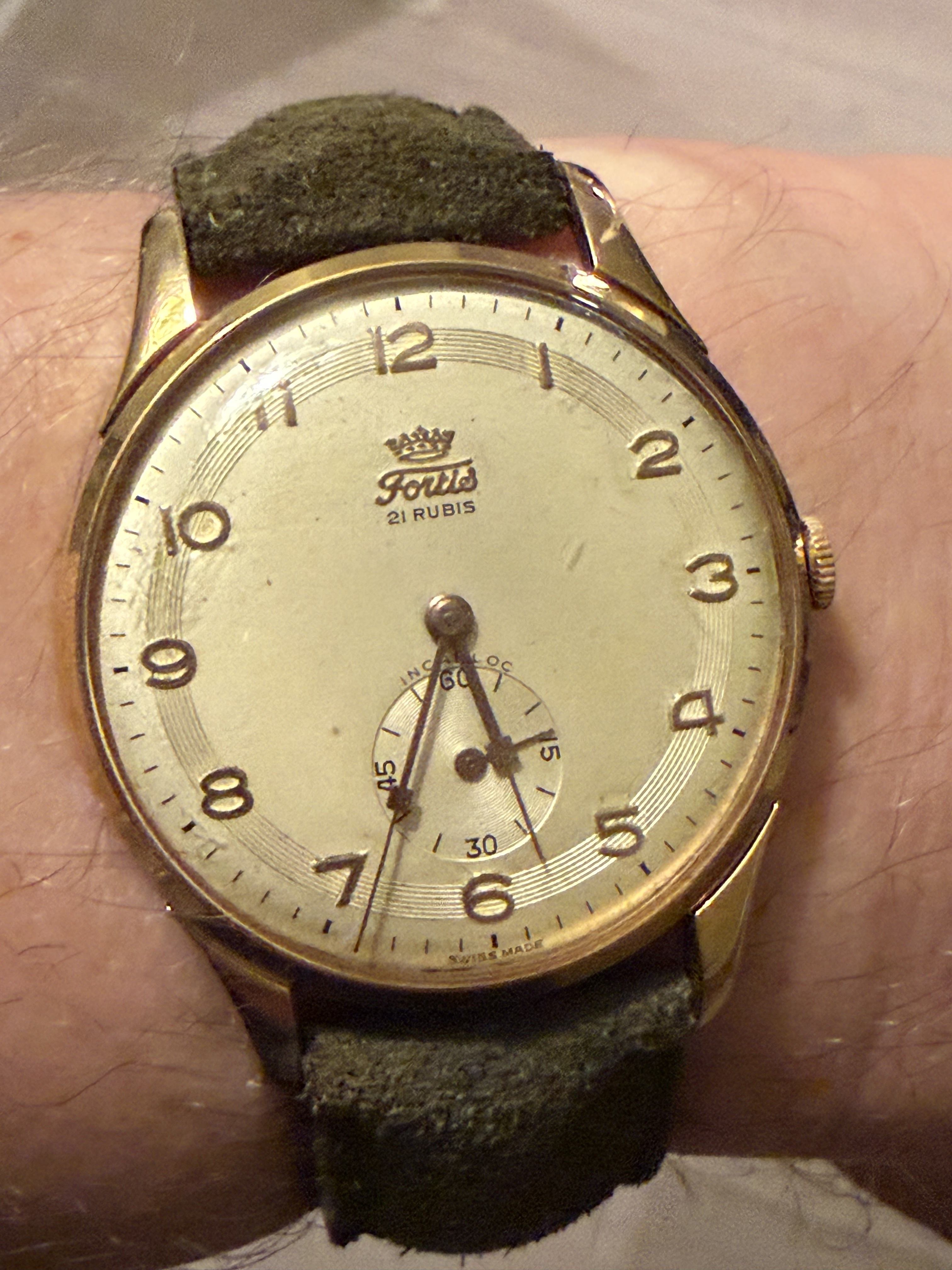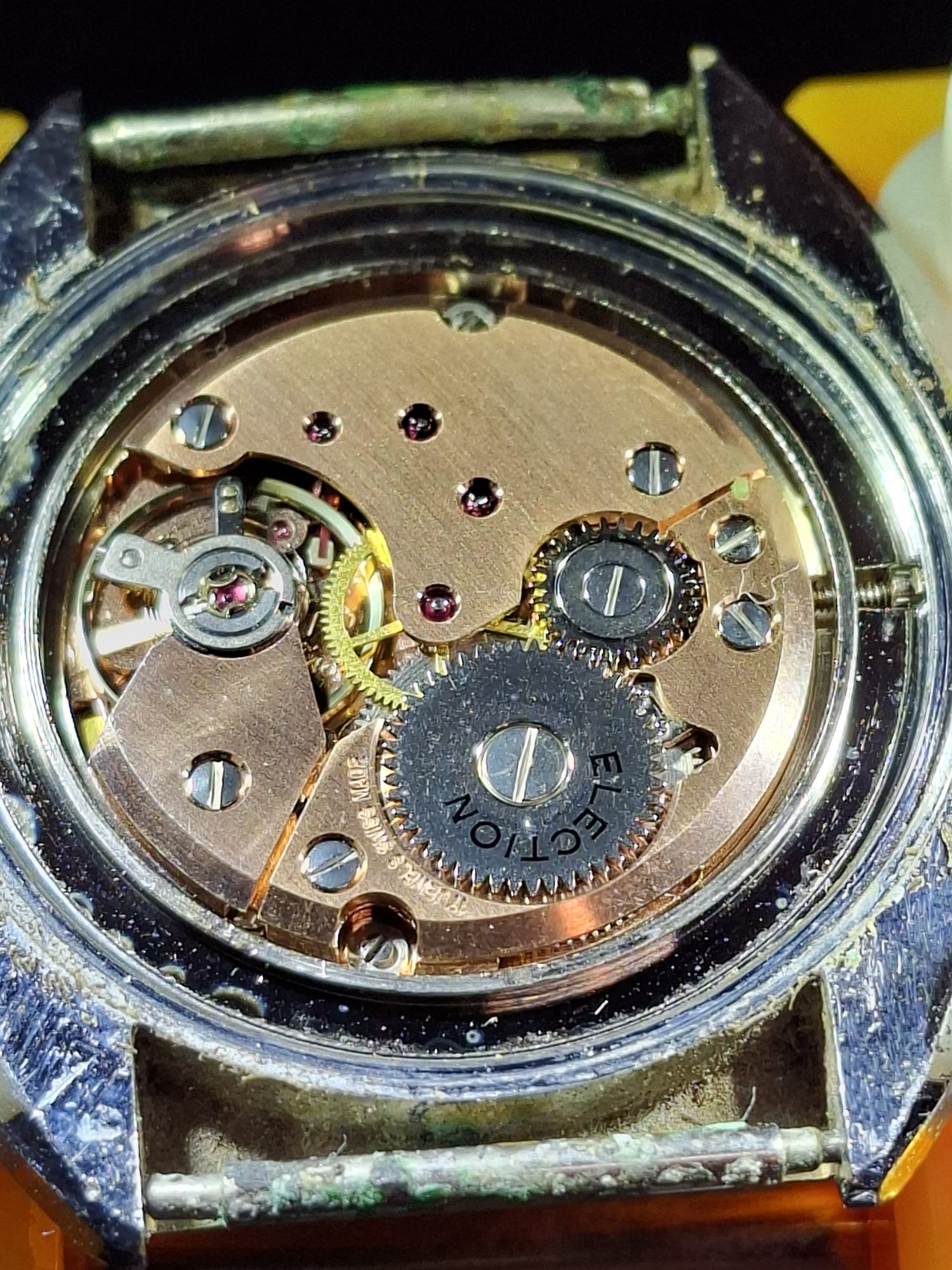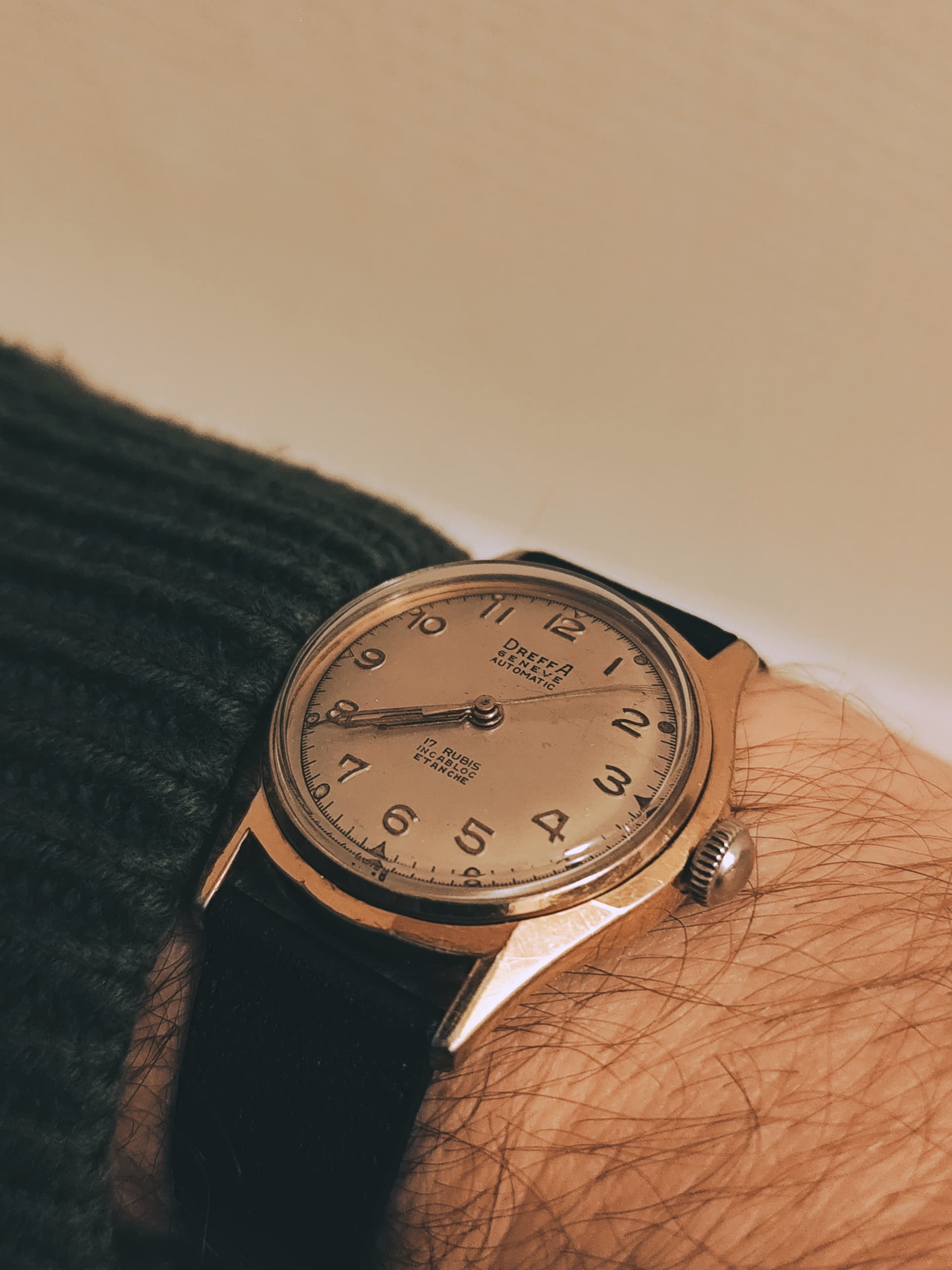 DreffA - met de Felsa 415 Bidynator, die vers van de werktafel bij @basvg komt. Deze had ik nog niet eerder om de pols gehad, want ik had hem een tijdje terug gekocht alszijnde niet-lopend. Er zat behoorlijk wat roest her en der, heel de yoke zat vastgekoekt.
