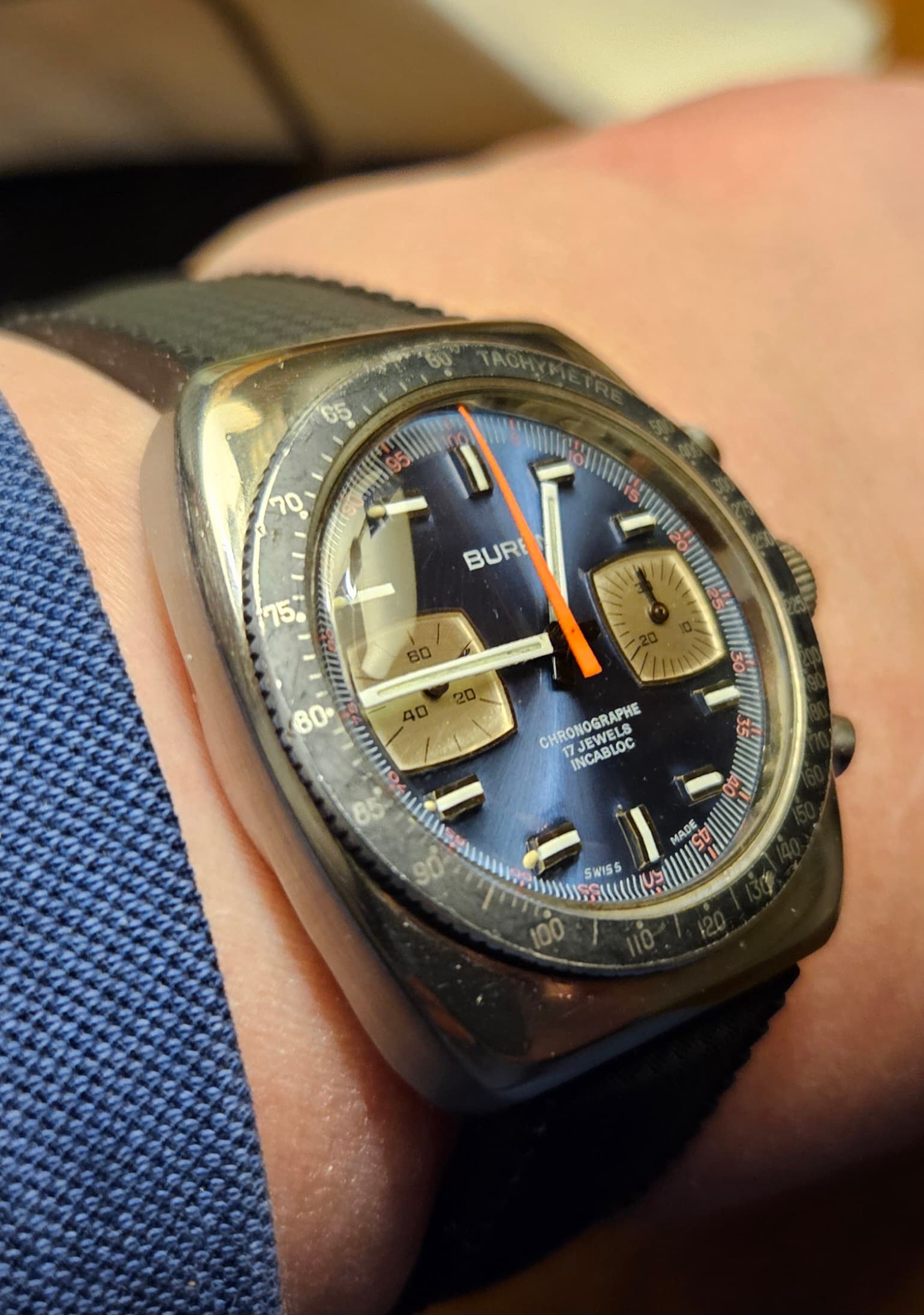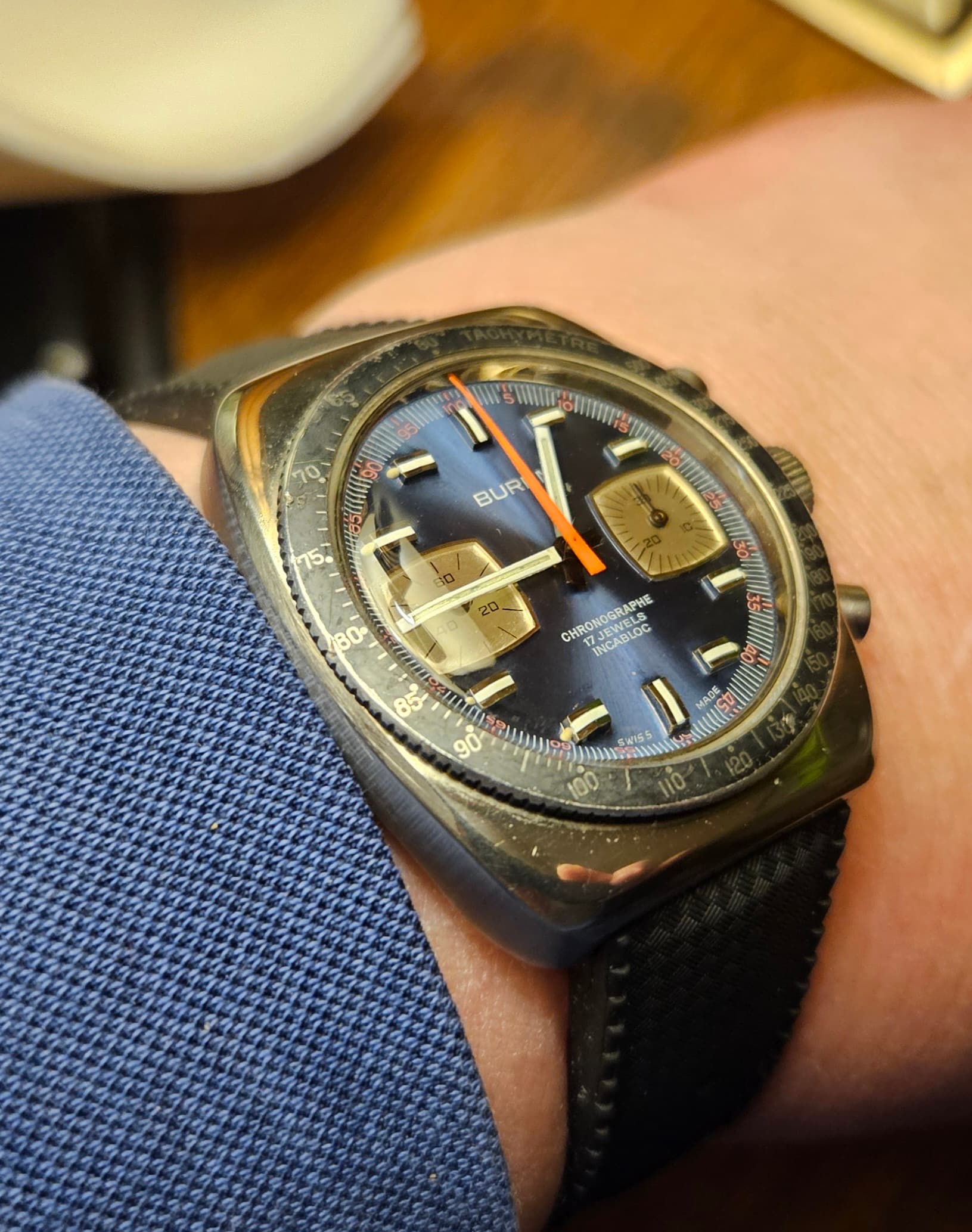 Even op de koffie bij een kennis en deze even van zijn pols gestolen voor een kiekje. Had hem zelf namelijk nog nooit gezien. Valjoux 7751 based uit 2003.