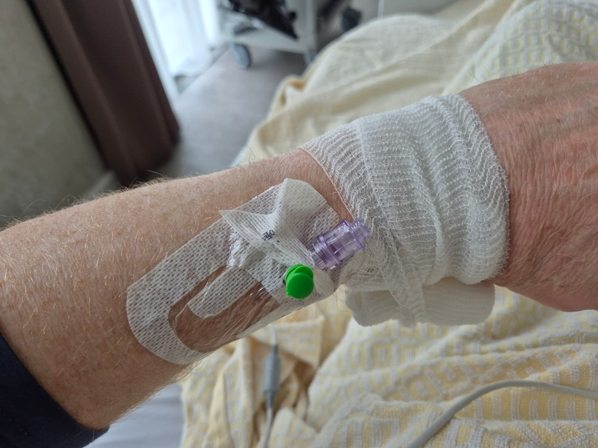 Hier even helemaal geen horloge om maar links en rechts infuus. Vannacht met de ambulance naar het ziekenhuis gebracht. Moet een paar dagen blijven op de IC.