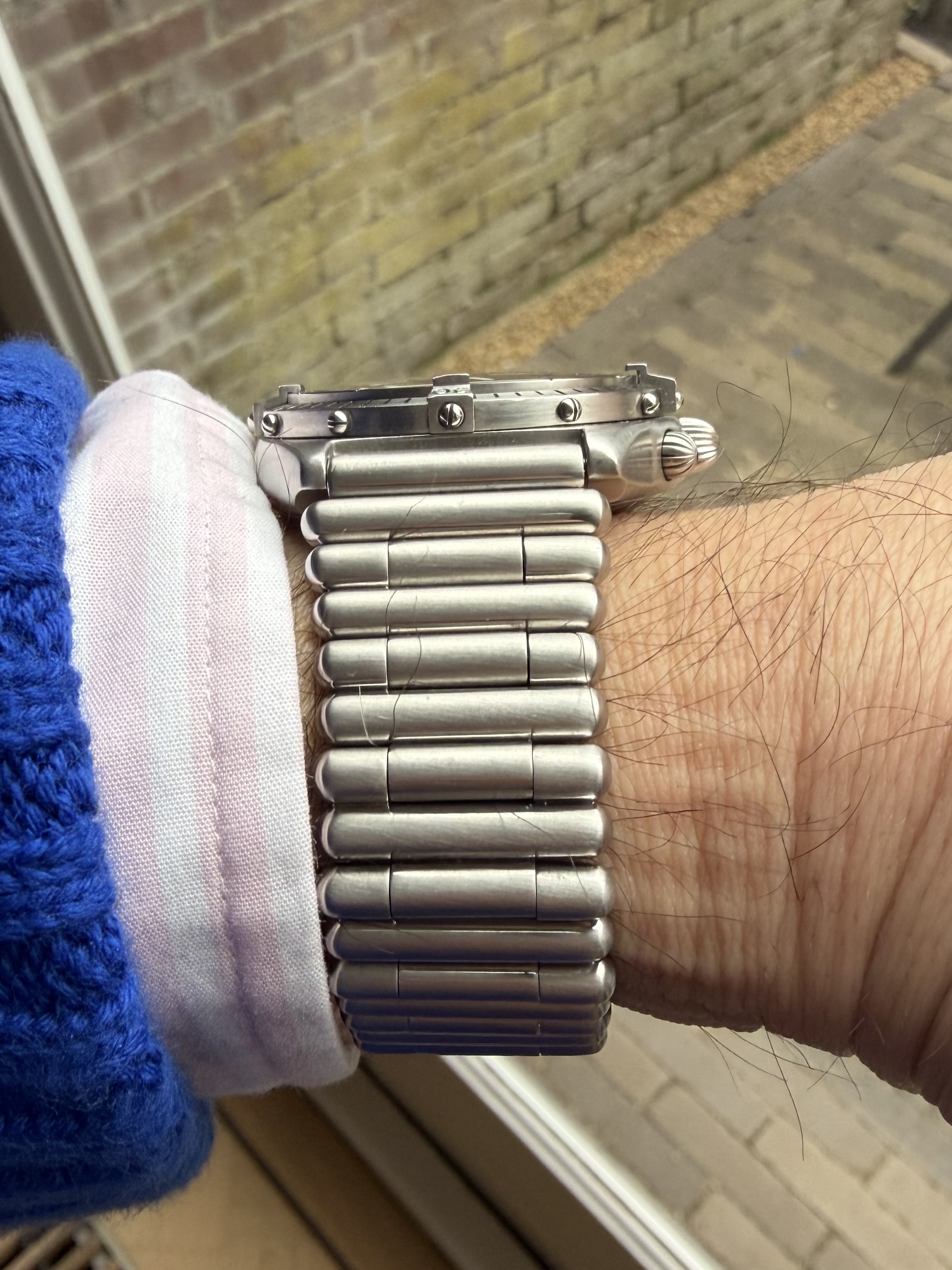 Met dank aan de horlogemaker vandaag een matte in plaats van glanzende rouleaux band zodat hij perfect op mijn Breitling 81.950 Chronomat Yachting past!