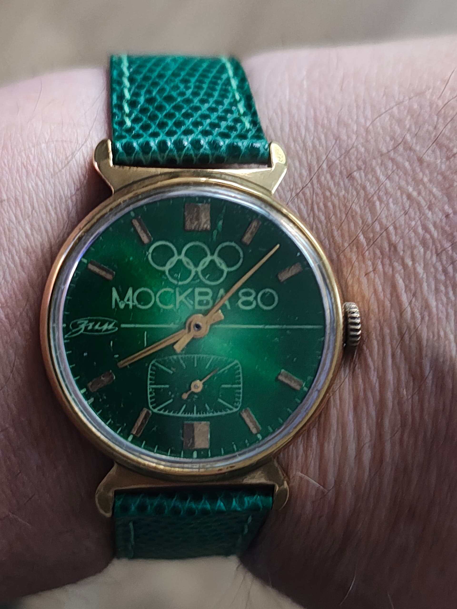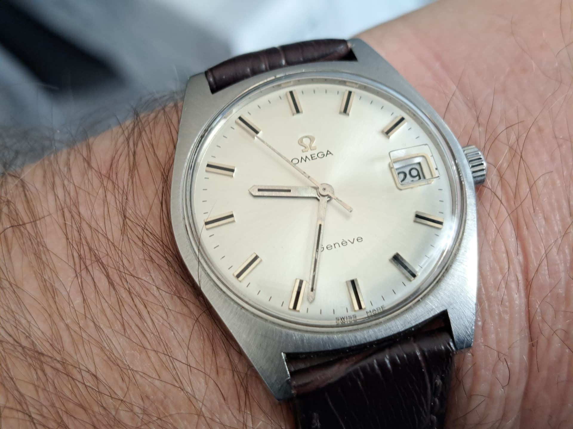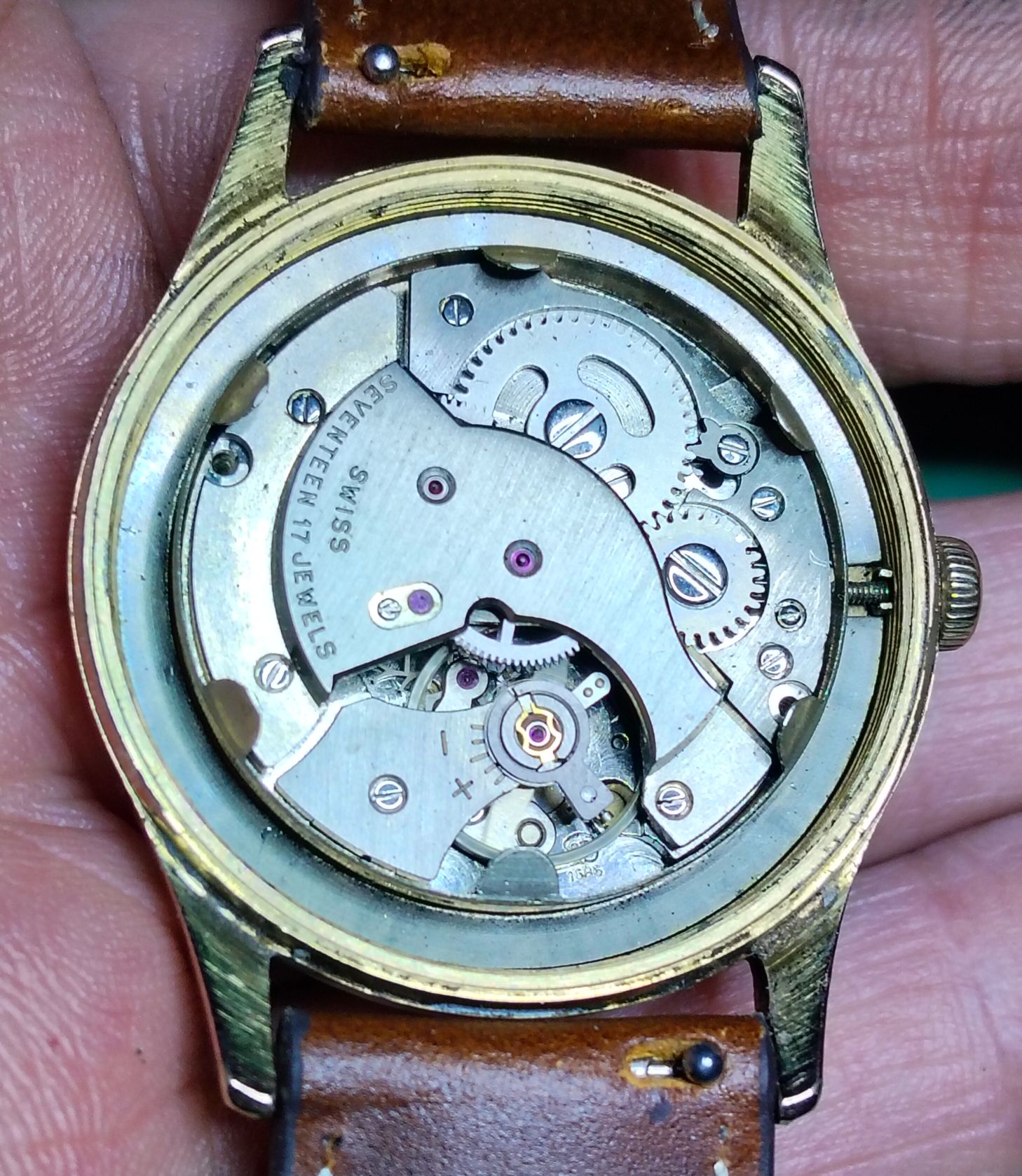 Merk is onbekend, lag al anderhalf jaar in een doos met een stalen band en zonder glas. Ik heb er zojuist een nieuw glas opgezet en een nieuw leren bandje, en een beetje opgepoetst.