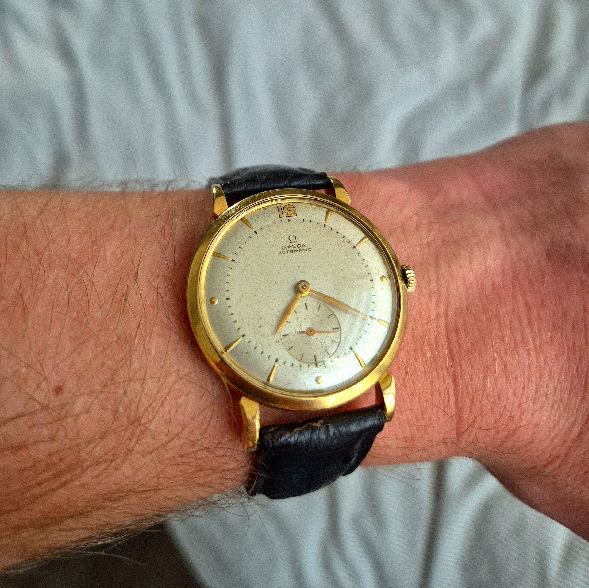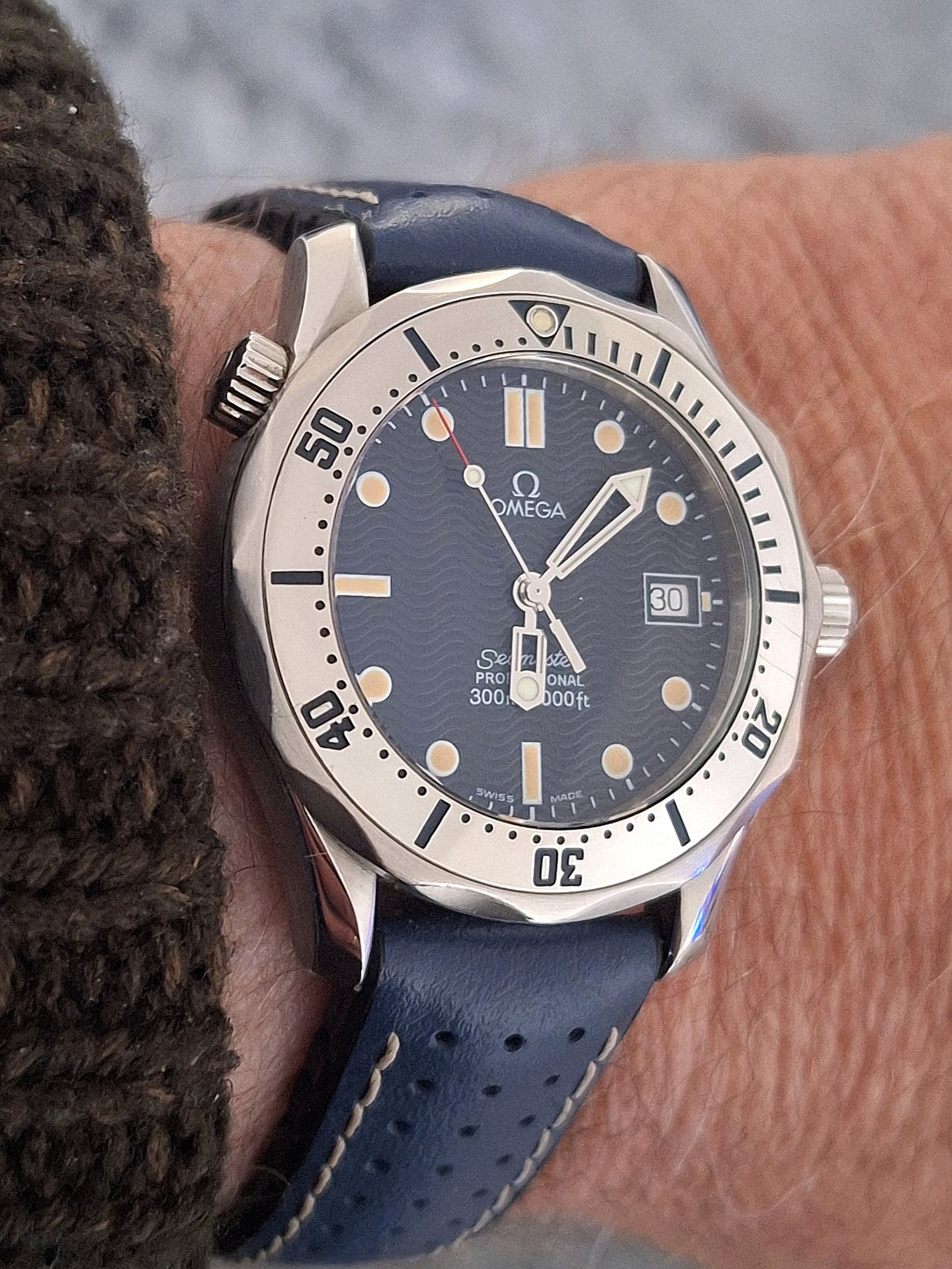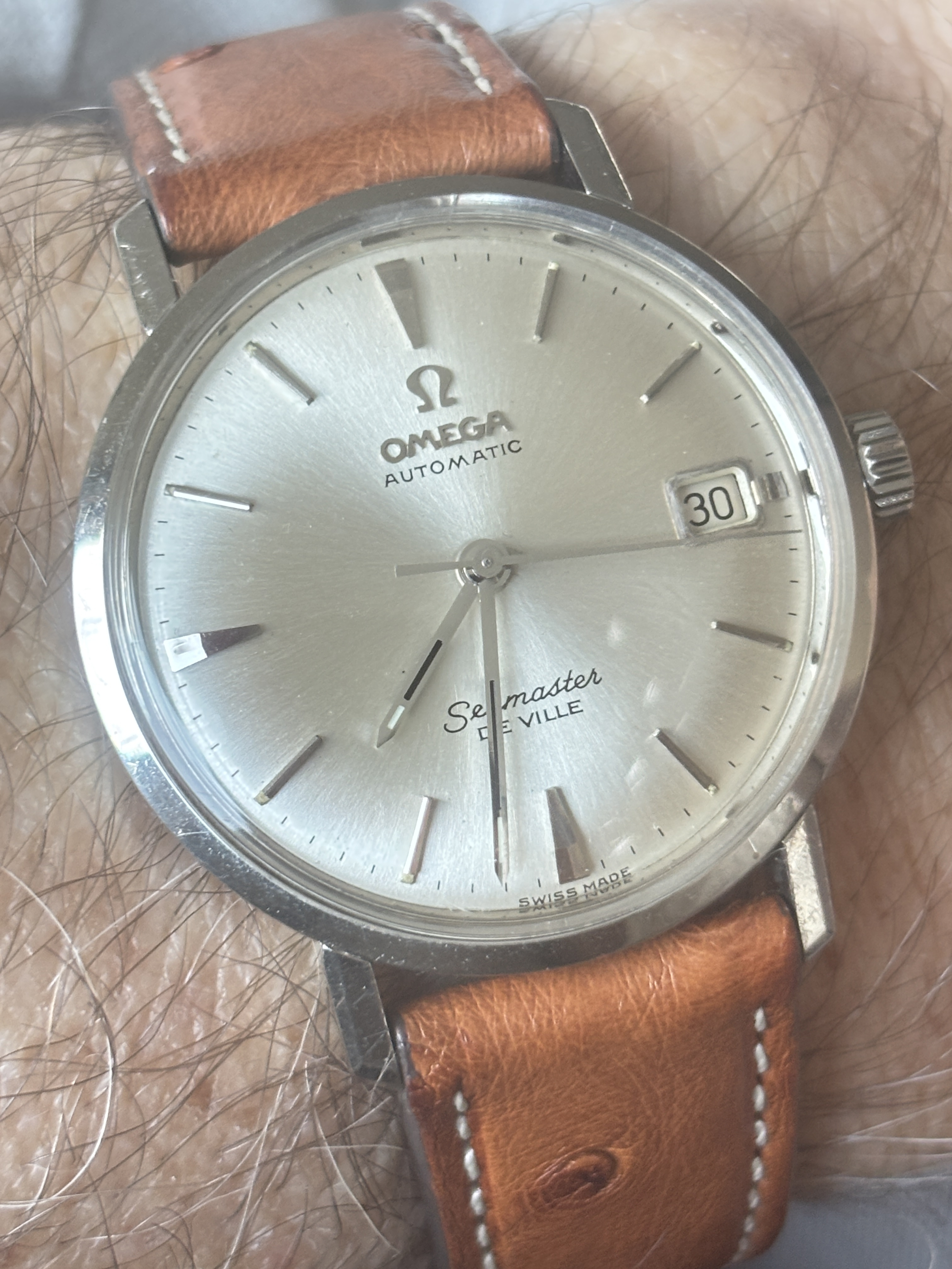 Gevonden (nieuw) in Amsterdam een paar jaar geleden. Een enorme partij matige horloges uit een collectie, waar ik toch nog een leuke vintage chrono en deze klassieke strap tussen spotte. ![]()