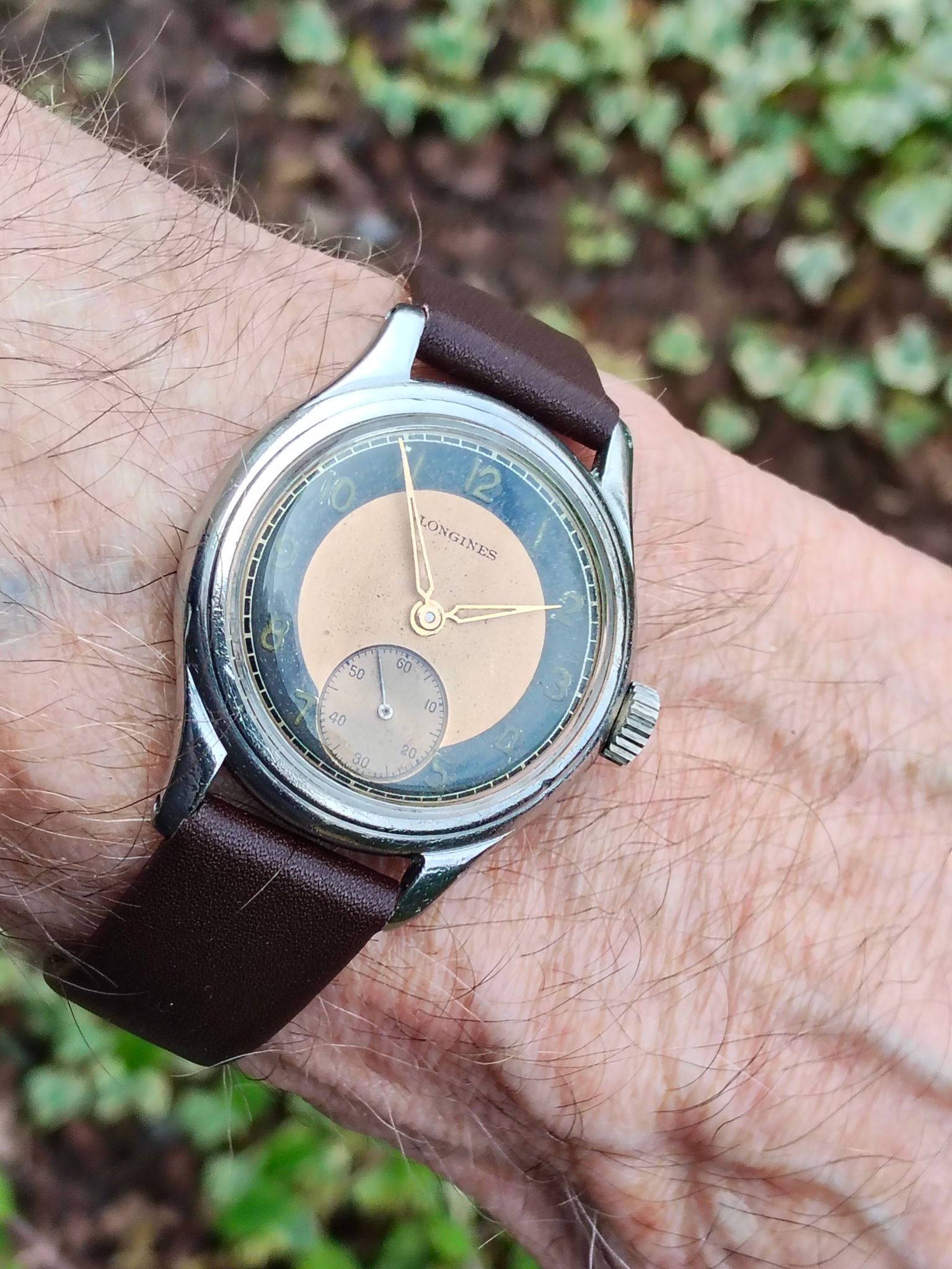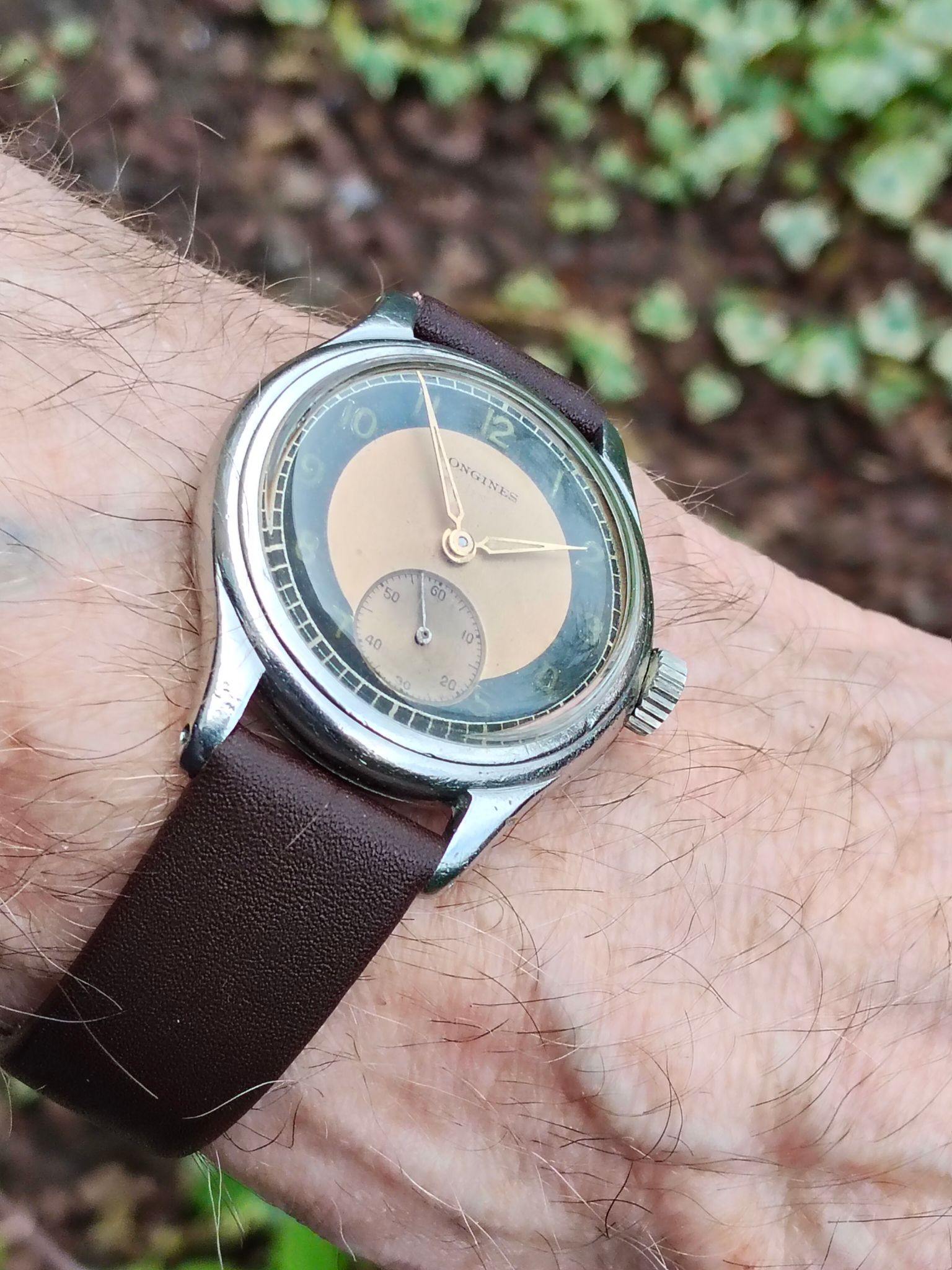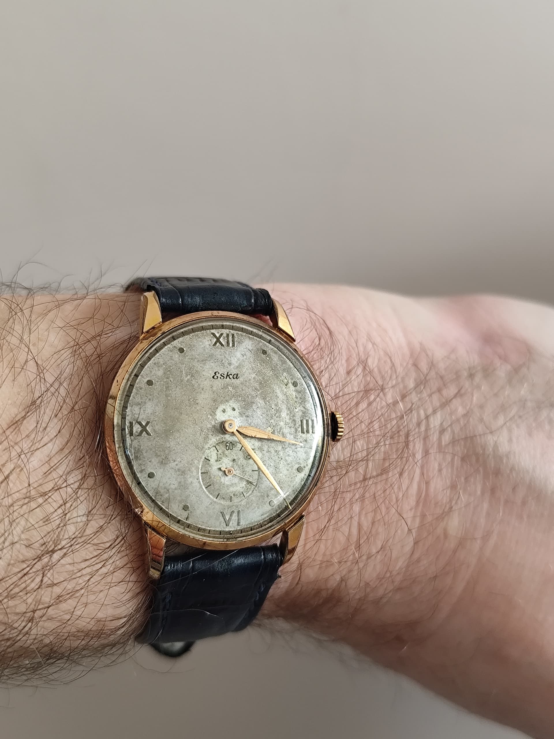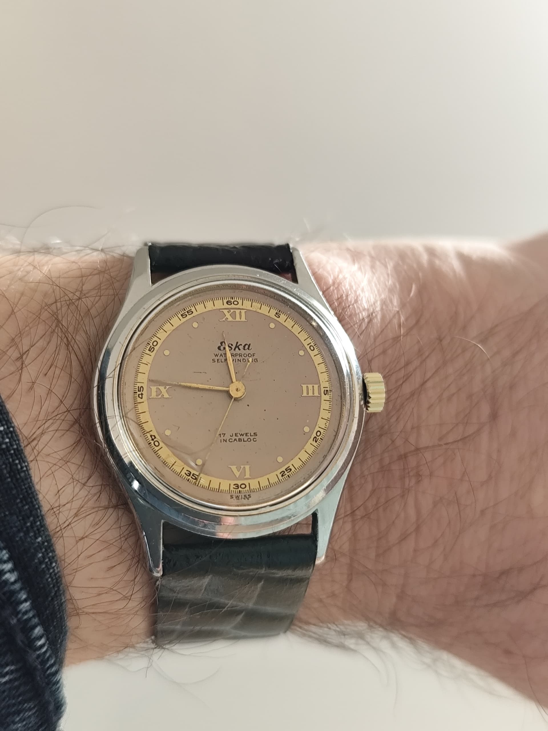 Vandaag gearriveerd. Gruen veri-thin practitioner. Herenhorloge 28 mm uit ca1943. Two-tone rose en witgoud over sterling.