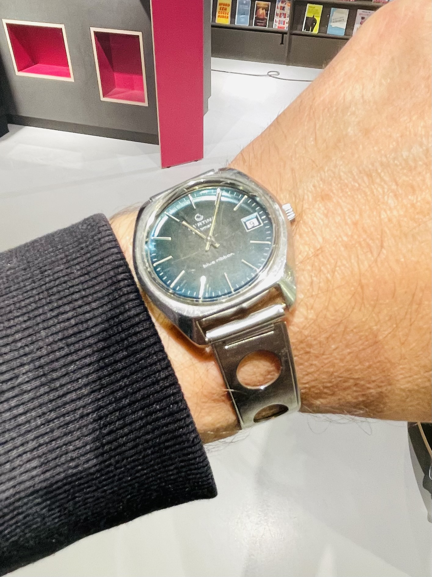 Maar nu kan ik weer een horloge om en dat is om te beginnen deze Olympic waar veel aan gerommeld is. Als het uurwerk na een service niet zo mooi had gelopen dan had ik hem ergens onder in de la gedeponeerd maar nu mag ie af en toe mee in de roulatie.