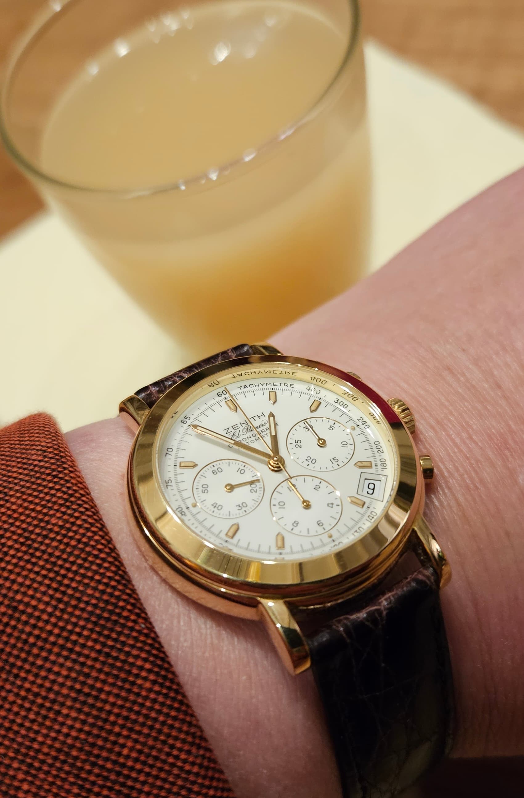 De 18k gouden Zenith El Primero uit de jaren '90 vandaag aan de pols. Omdat het zondag was. ![]()
