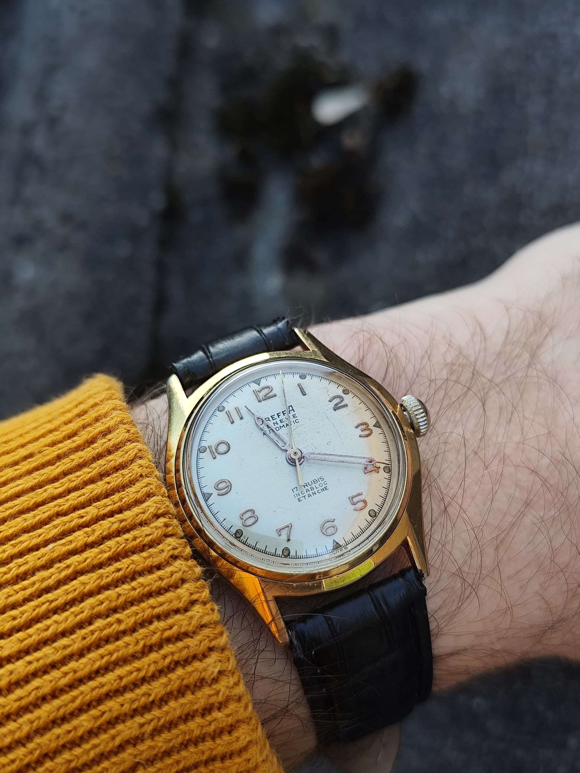 Niet van mezelf, maar wel ter test aan de pols. Gisteren een servicebeurt gegeven. Datum/dag heb ik niet gelijk gezet, maar is vannacht wel netjes versprongen.