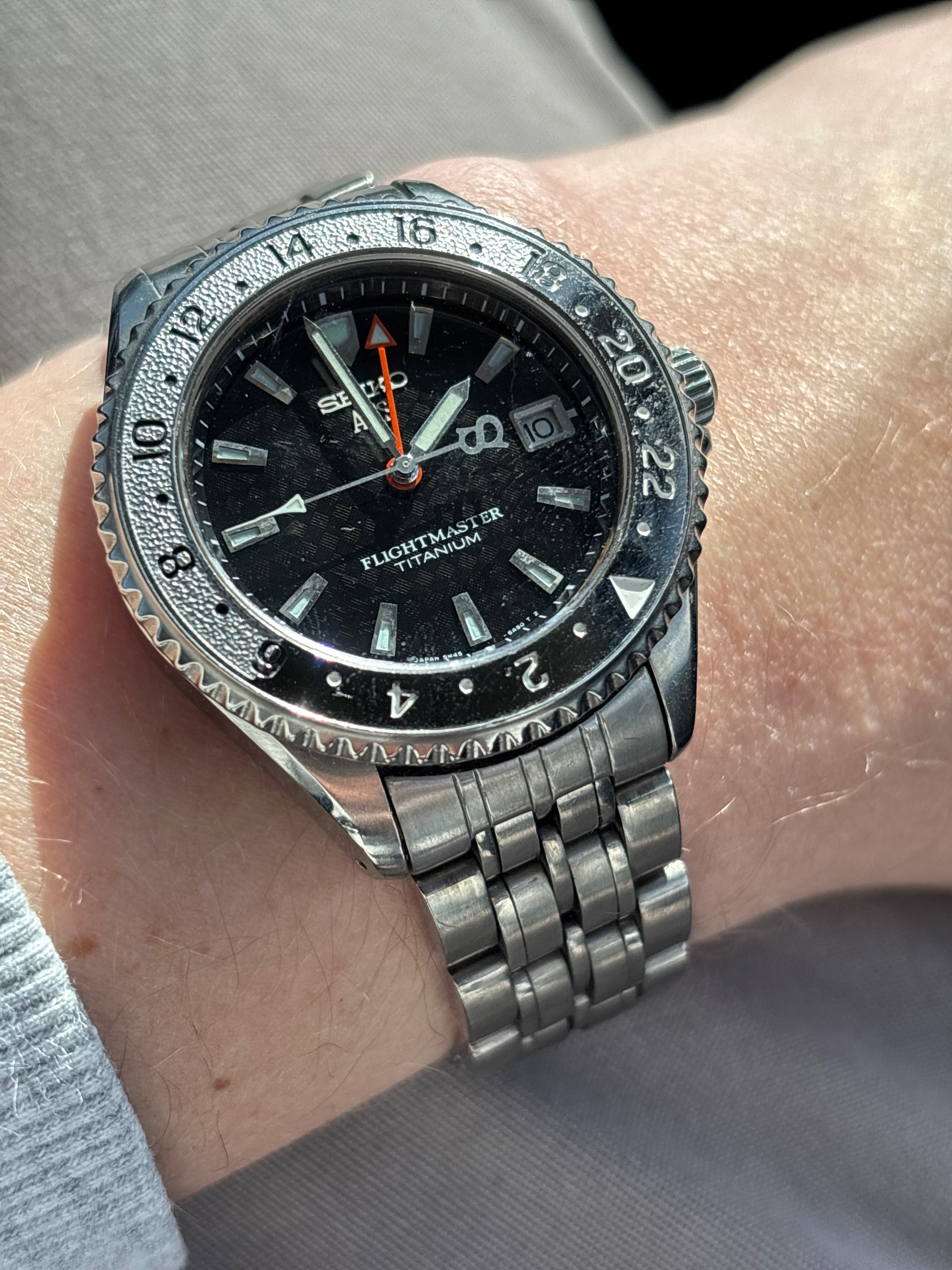 Dankjewel! Ze zijn verassend zeldzaam, deze AGS Flightmaster. Ik mis helaas 1 pinnetje van de bracelet, maar verder is hij perfect. Bouwjaar ‘98, dus dat kan als vintage door. De tijd vliegt.