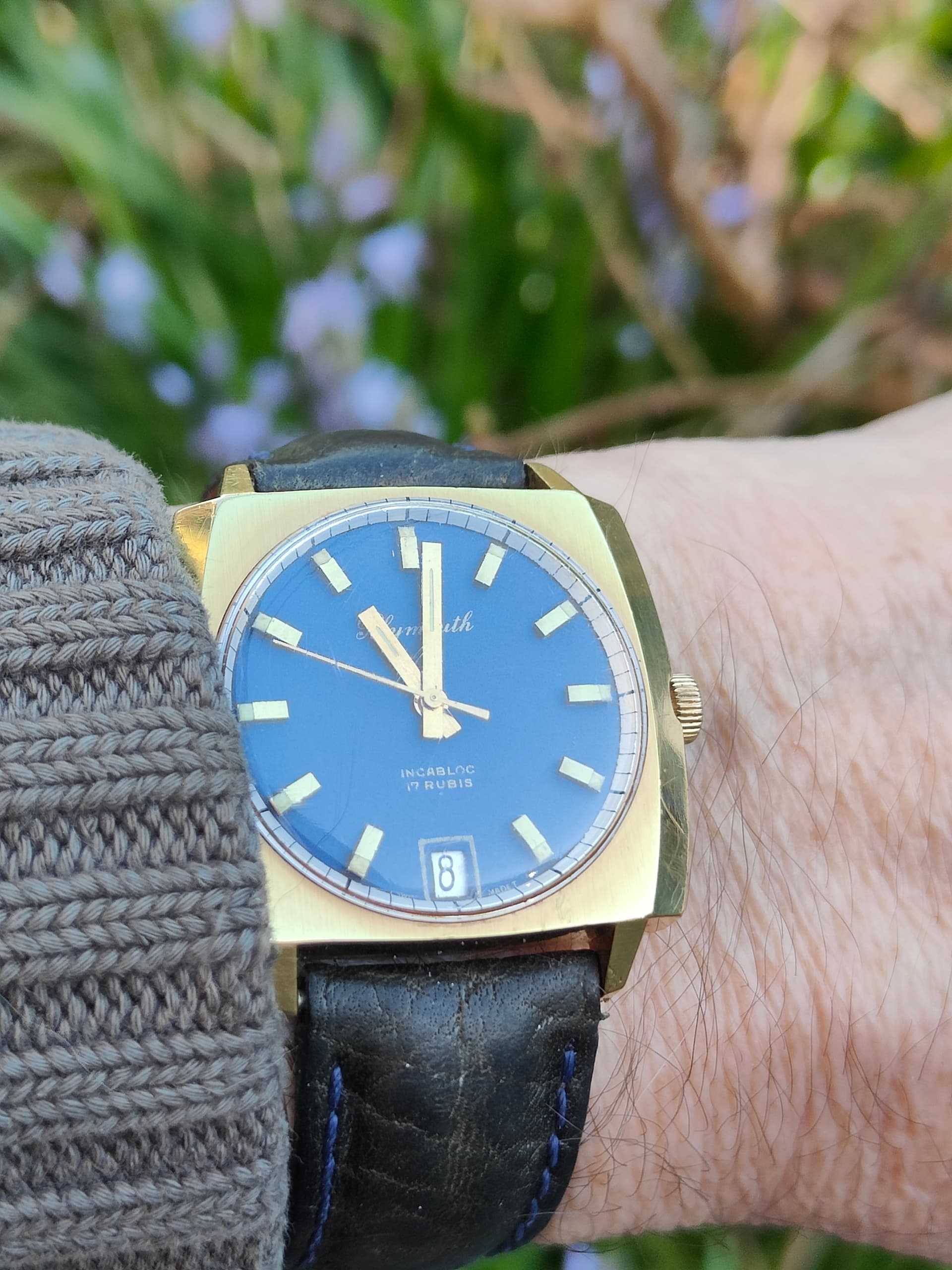 Binnenin tikt een degelijk AS 1130 uurwerk, een veelgebruikt handopwind kaliber uit die periode.