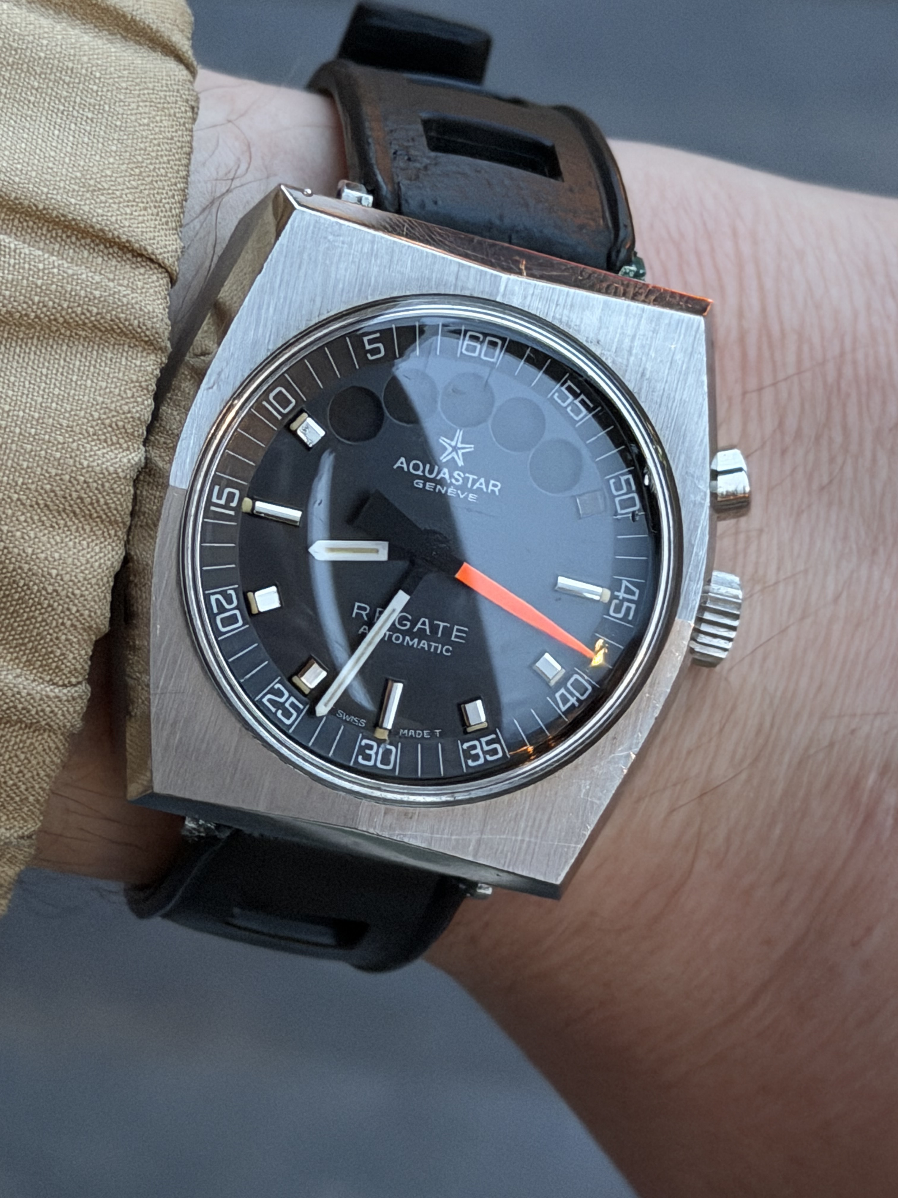 Met twee Pontiacs; een Movado; een Swatch; een Seiko en een Garmin heb ik er een zestal ![]()