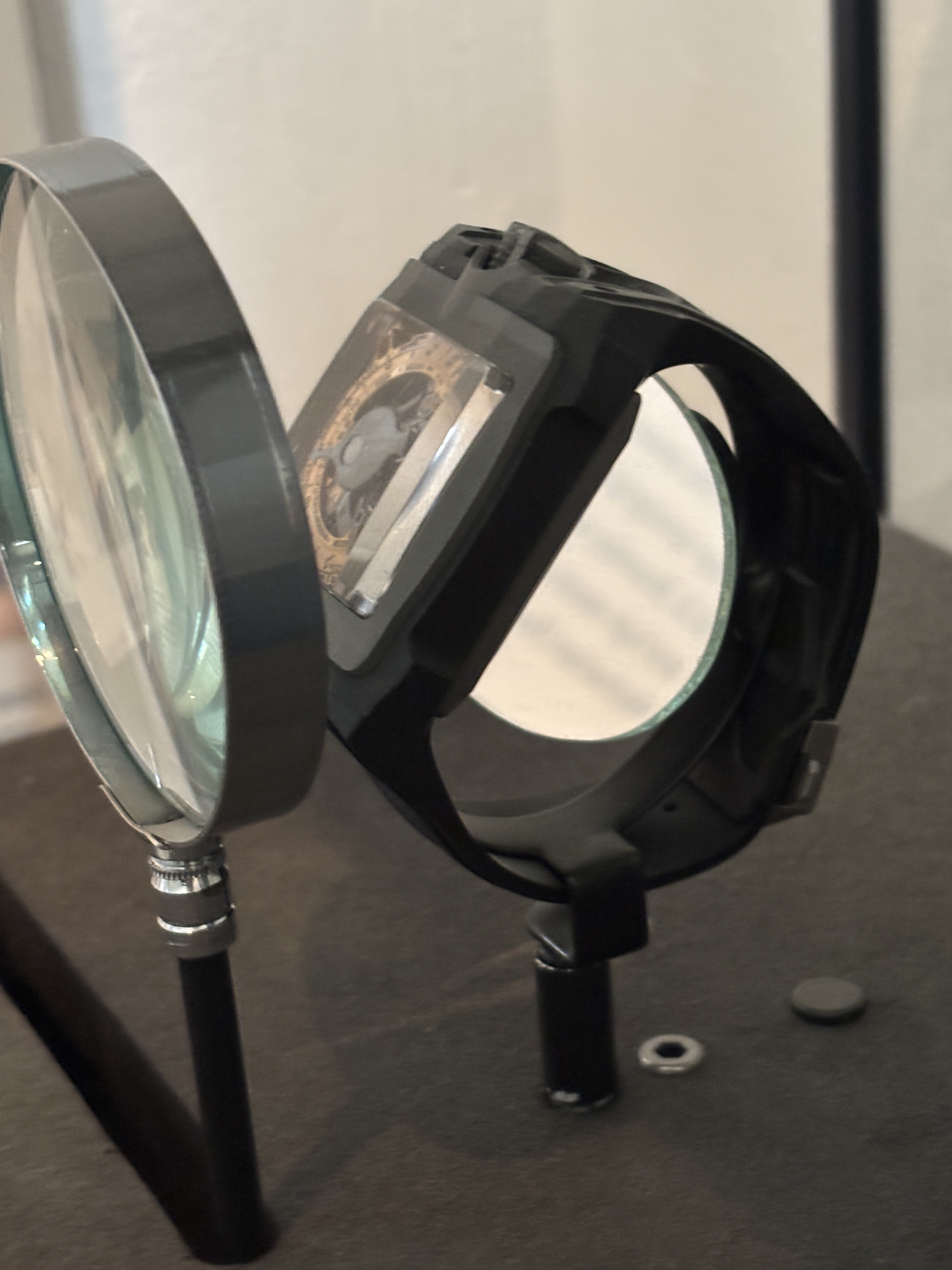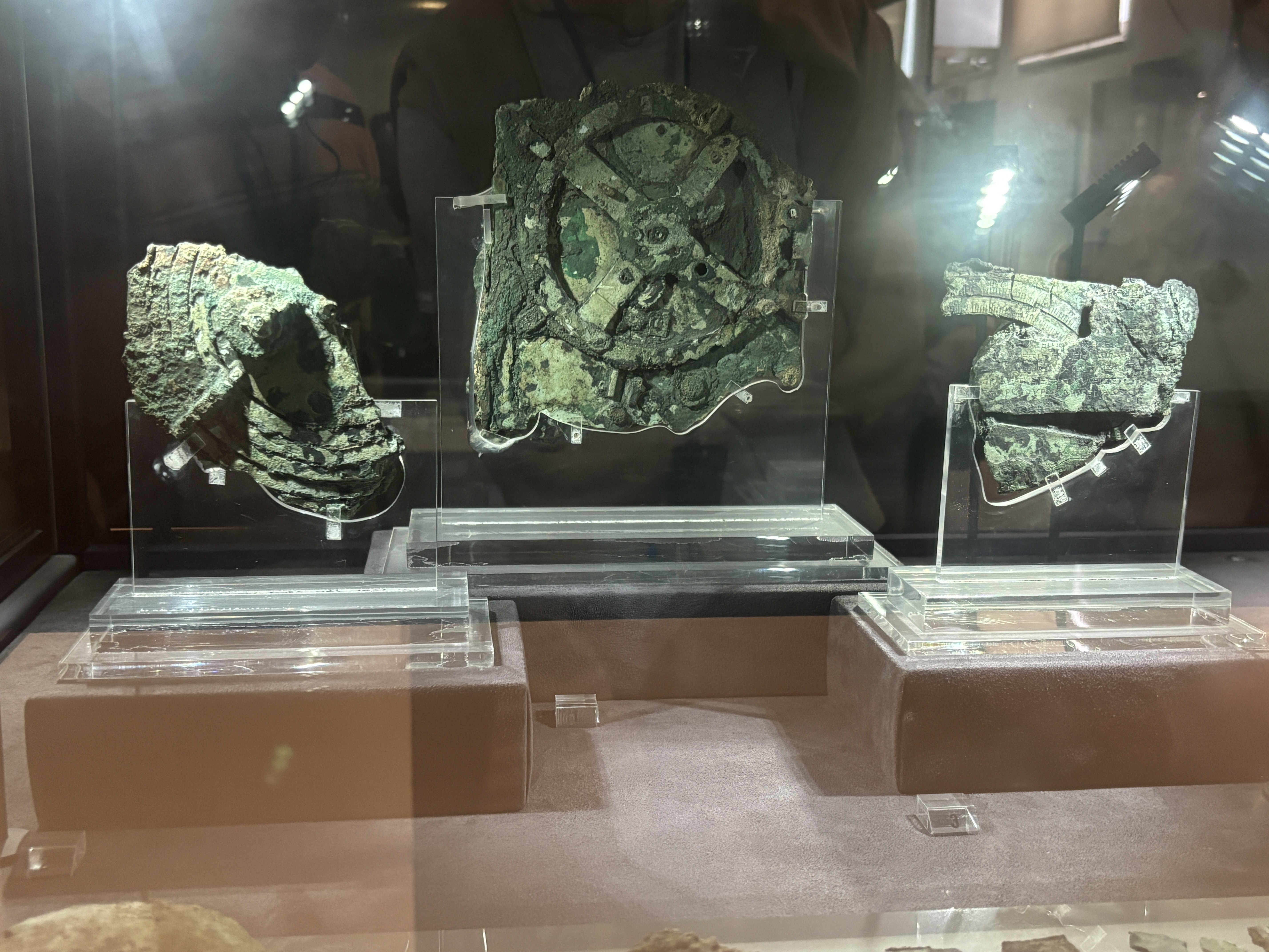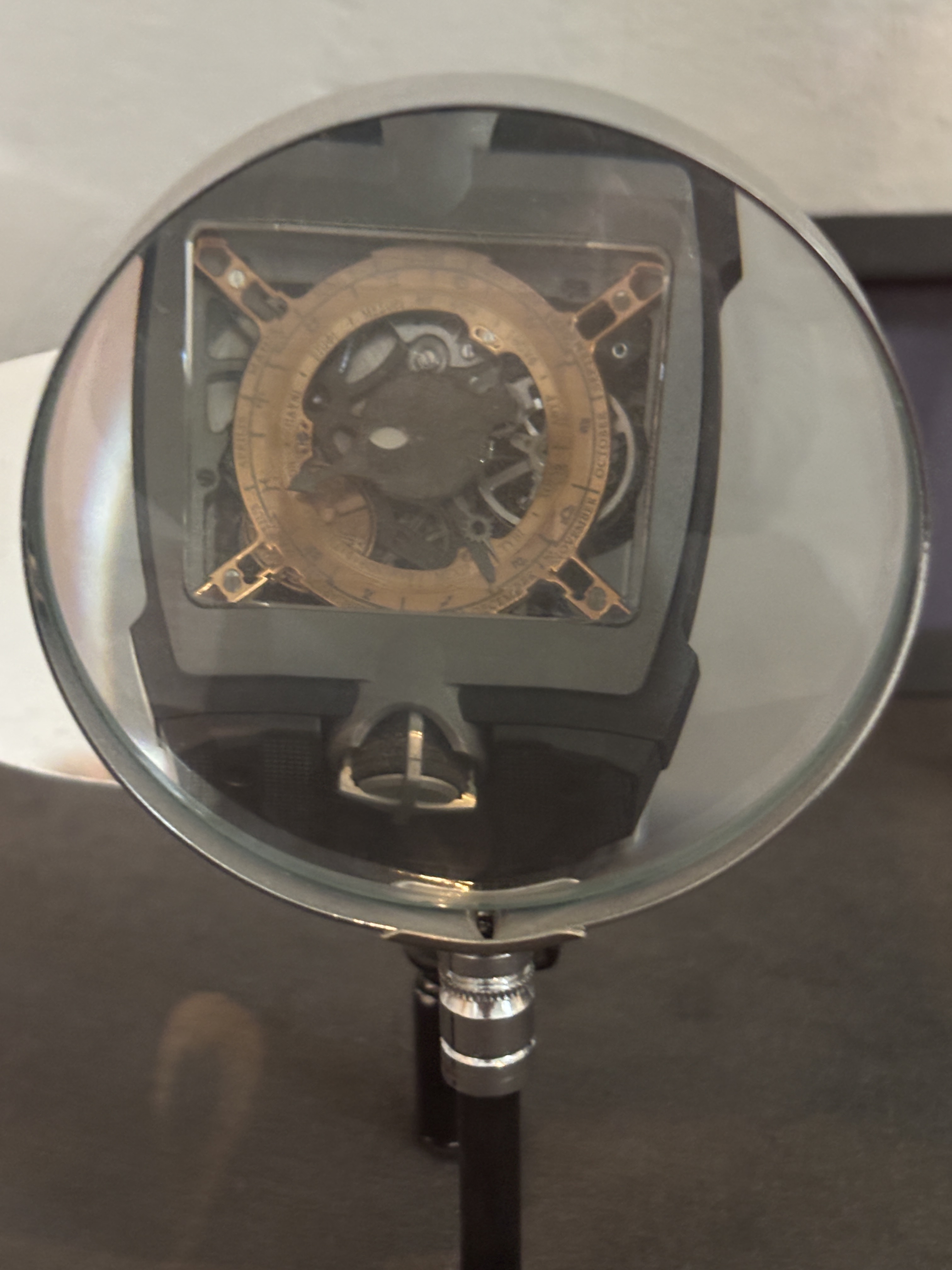 Blijkbaar hebben ze er 100 jaar over moeten nadenken hoe het precies werkt. In 1967 pas de doorbraak. Hublot heeft het mechanisme verkleind en in een horloge verwerkt ( maar dat vonden de Grieken duidelijk niet interessant, want het licht van de kast was uit)