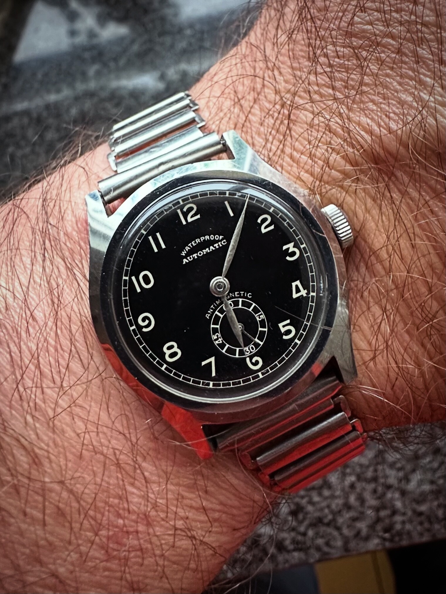 Ik had ook een Elka met zo’n speciale bezel zojuist. Maar de wijzers liepen tegen elkaar aan, dus die ligt nu op de werktafel.